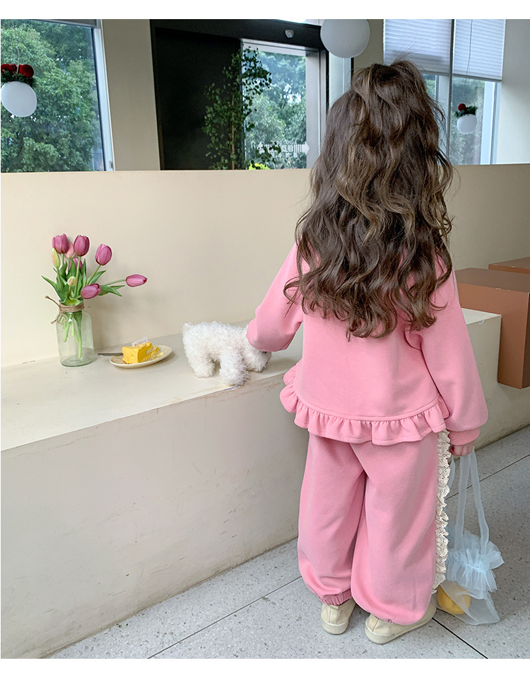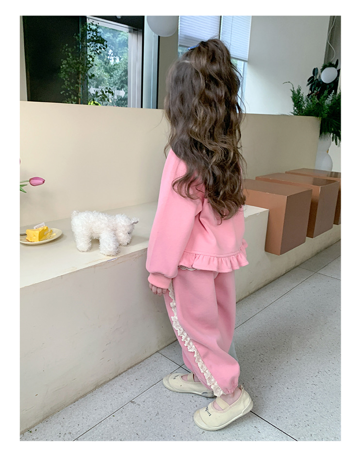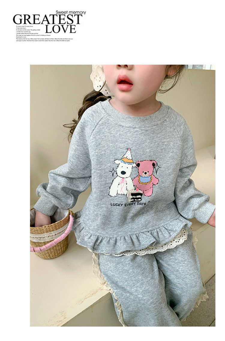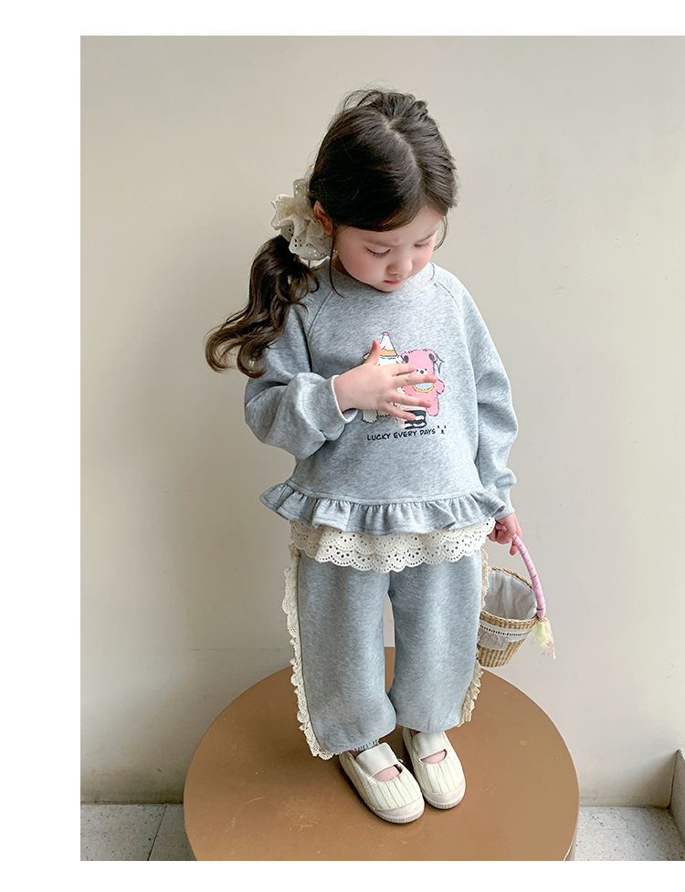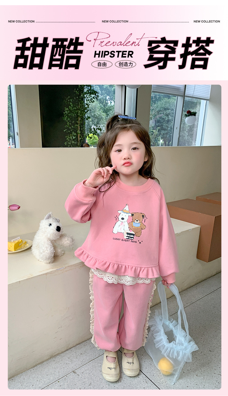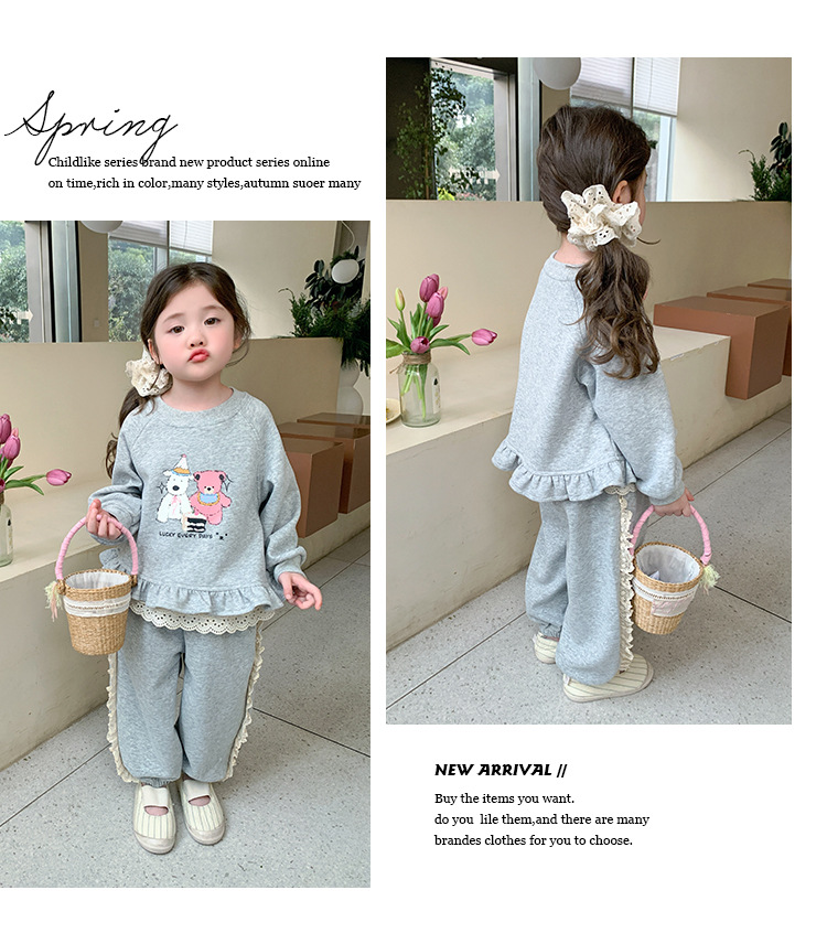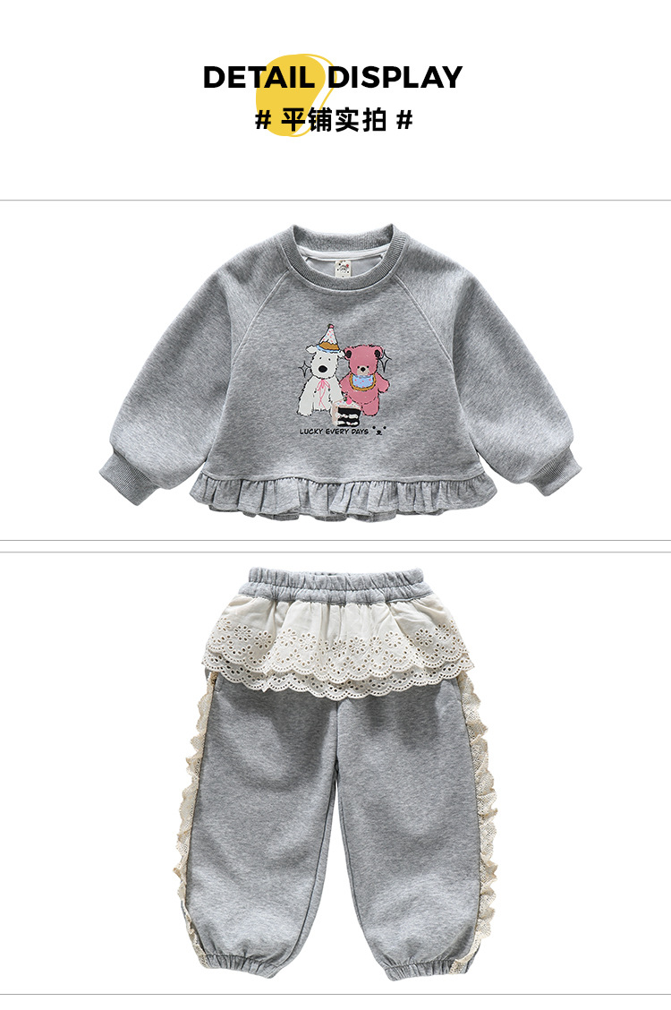 소녀 레이스 니트 만화 세트 봄과 가을 2025 새로운 패션 작은 소녀 스웨터 스포츠 투피스 세트스토어 가기