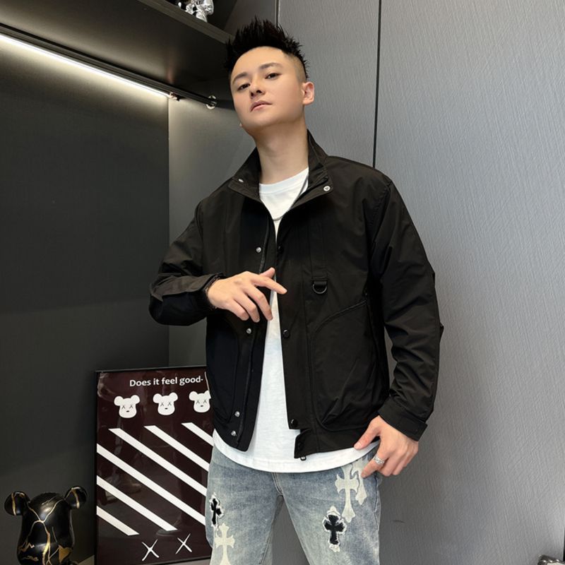 2025 봄과 가을 새로운 남성 수직 칼라 툴링 대형 포켓 자켓 인터넷 인기있는 간단한 올 매치 미국 캐주얼 재킷 남성용