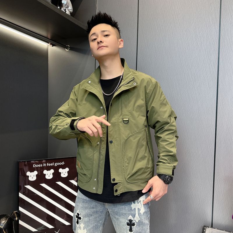 2025 봄과 가을 새로운 남성 수직 칼라 툴링 대형 포켓 자켓 인터넷 인기있는 간단한 올 매치 미국 캐주얼 재킷 남성용스토어 가기
