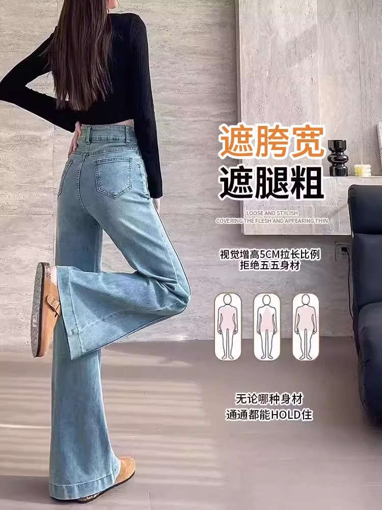 여성용 얇은 마이크로 플레어 청바지 2026 봄 여름 하이웨이스트 블루 캐주얼 슬림핏 스몰 사이즈 데님 스트레이트 팬츠 2942