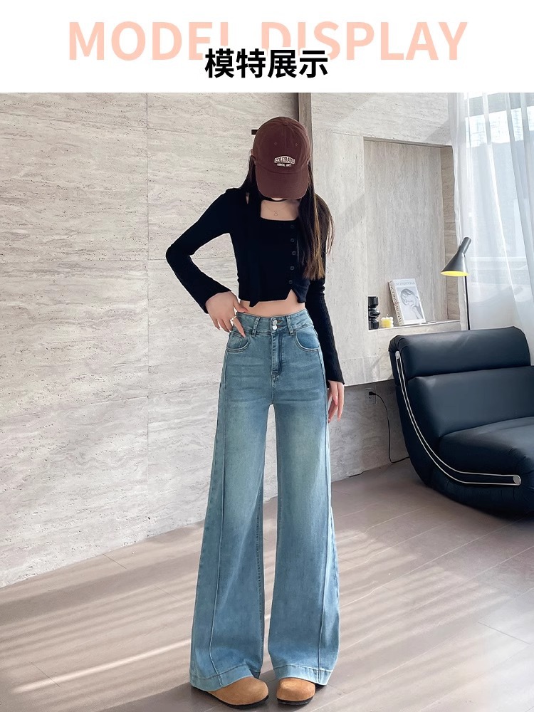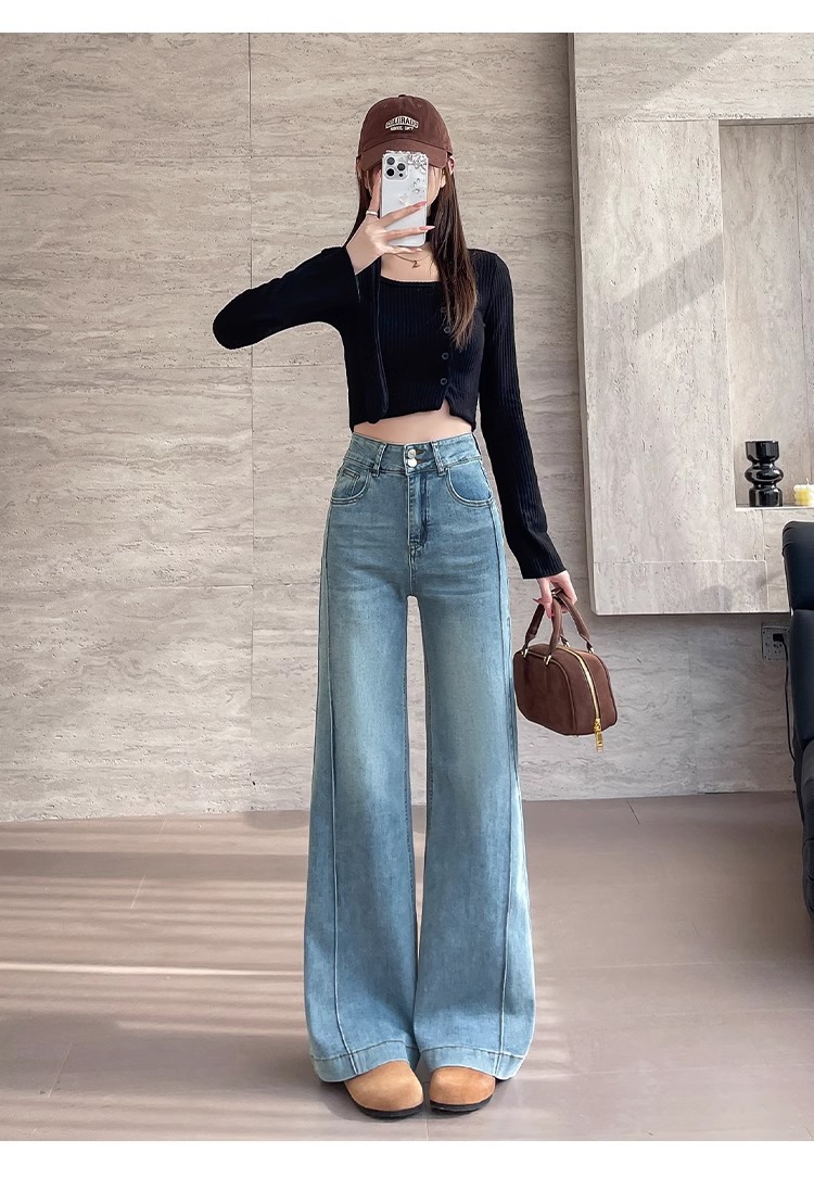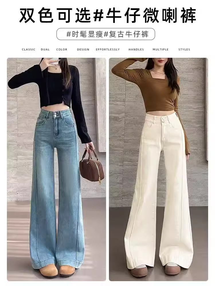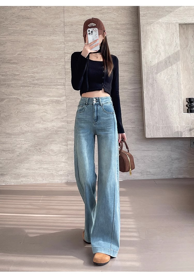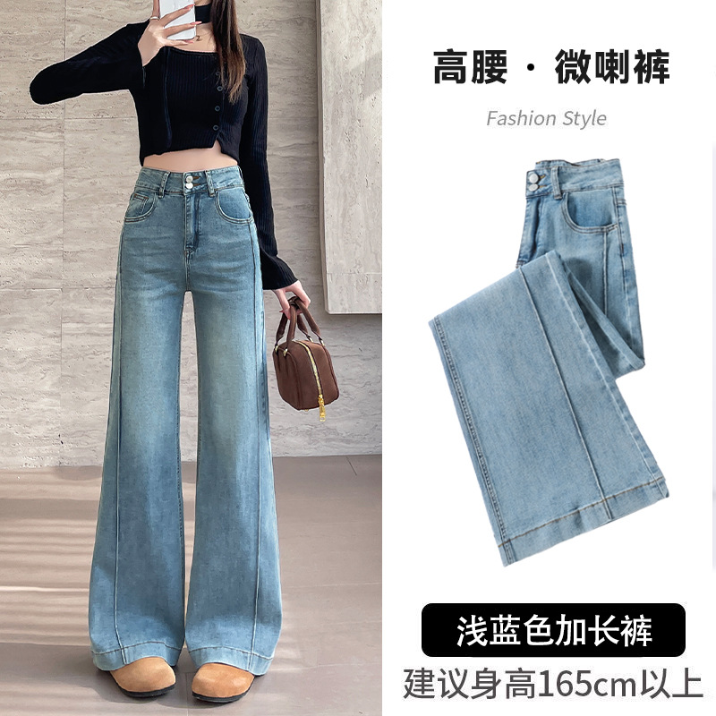 여성용 얇은 마이크로 플레어 청바지 2026 봄 여름 하이웨이스트 블루 캐주얼 슬림핏 스몰 사이즈 데님 스트레이트 팬츠 2942스토어 가기