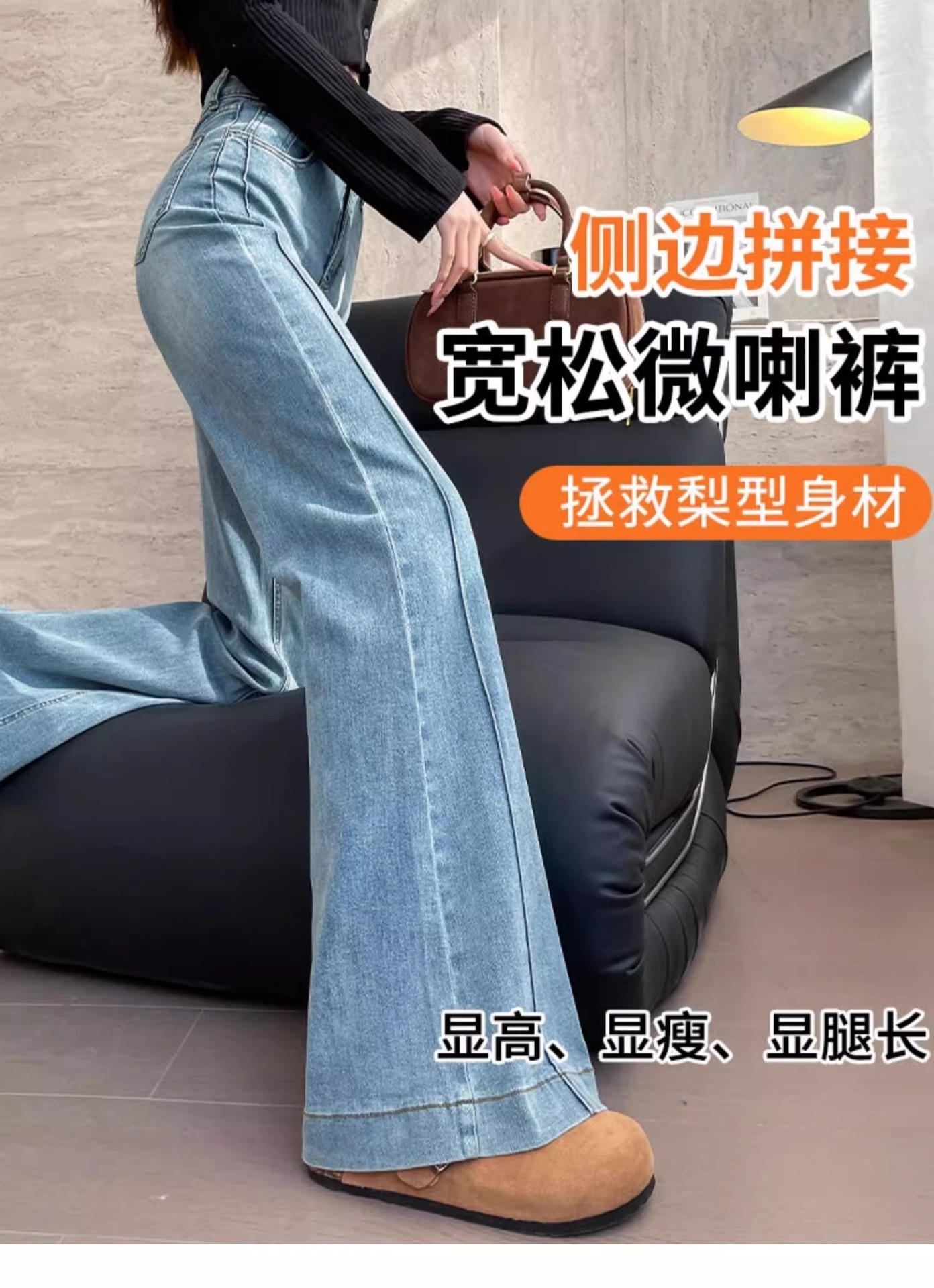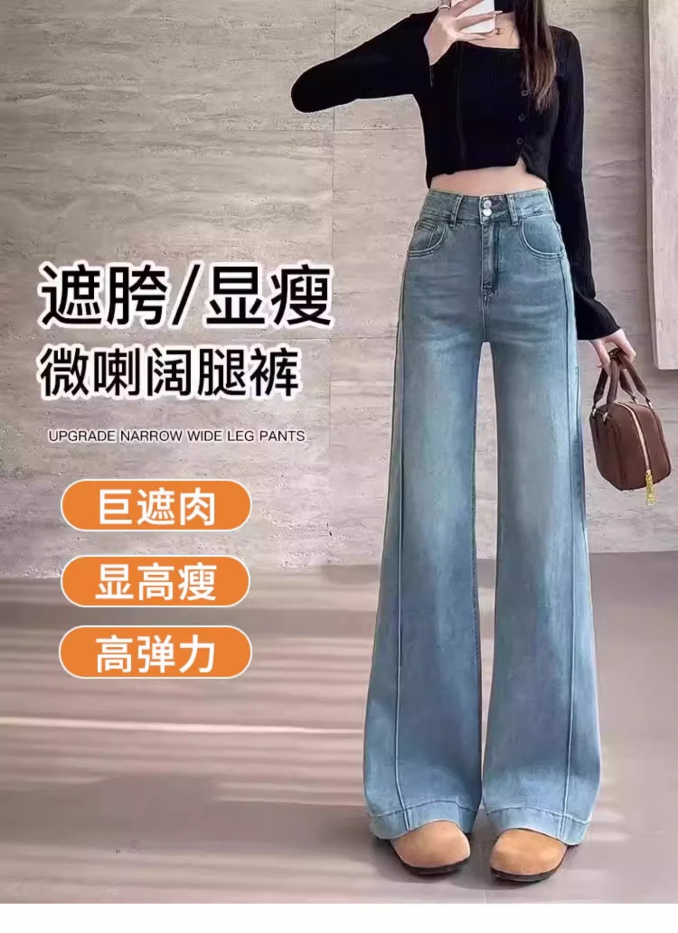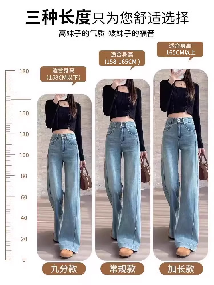 여성용 얇은 마이크로 플레어 청바지 2026 봄 여름 하이웨이스트 블루 캐주얼 슬림핏 스몰 사이즈 데님 스트레이트 팬츠 2942스토어 가기