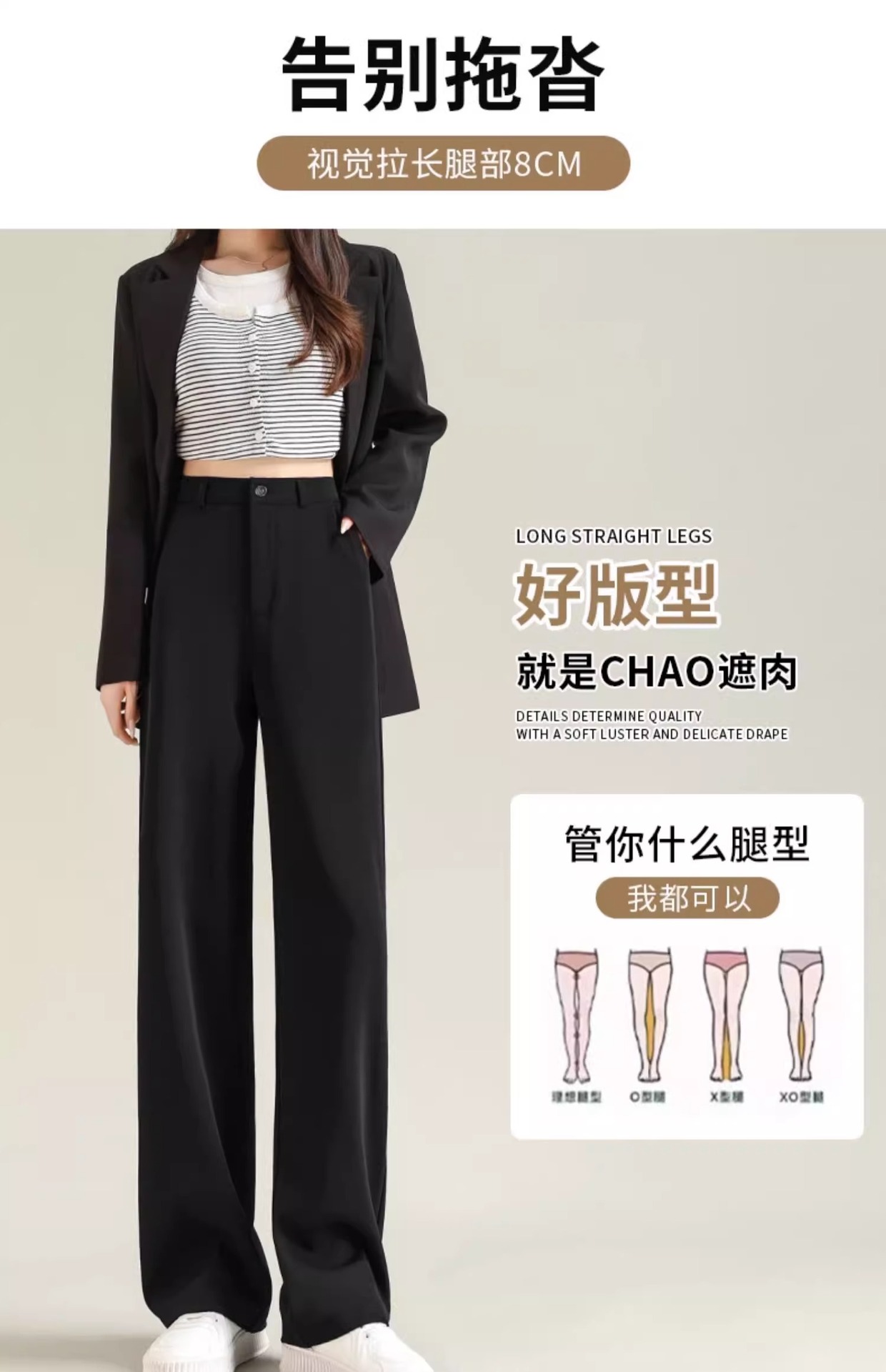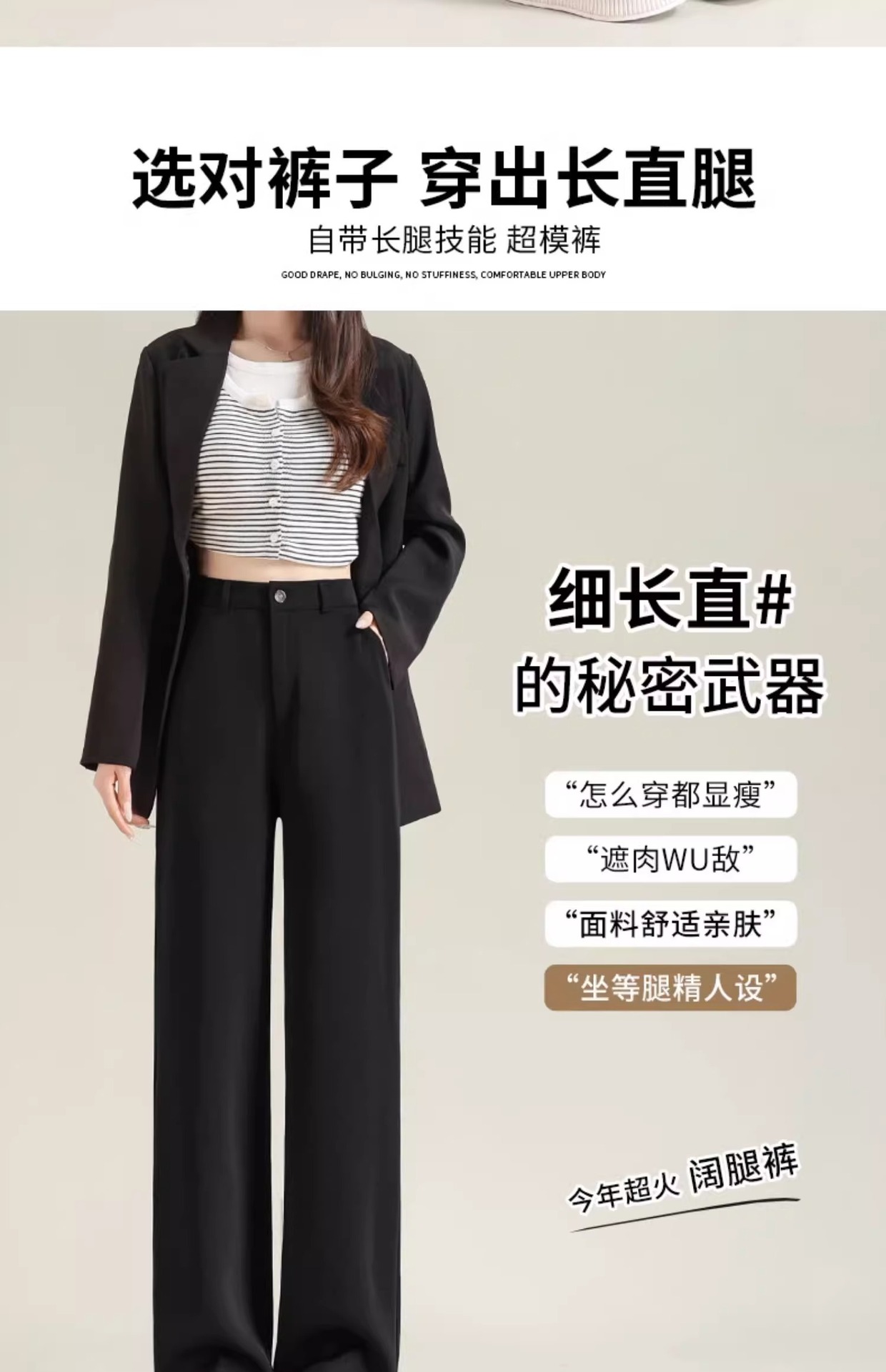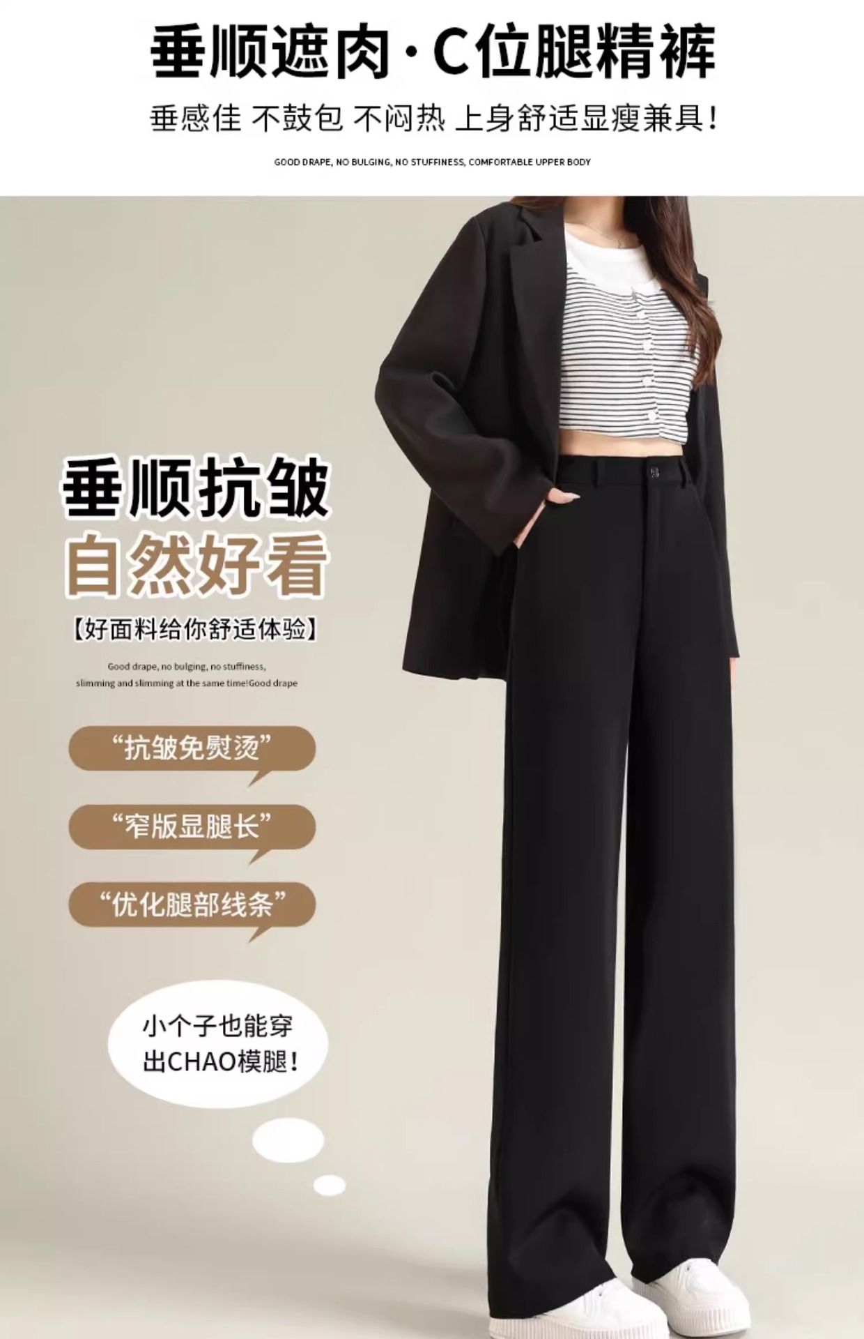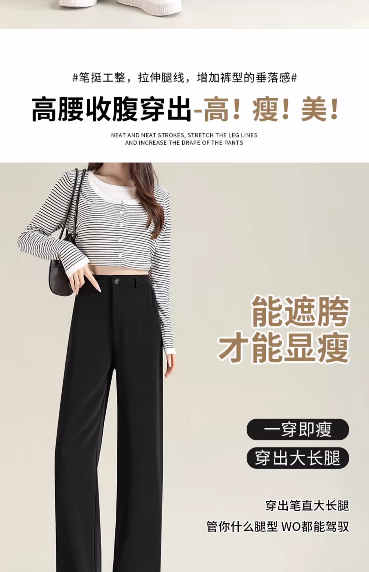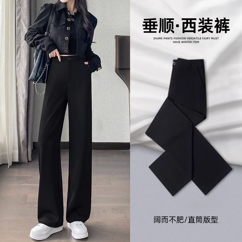 스트레이트 레그 세트 바지 여자 가을과 겨울 2025 새로운 스타일 작은 고급 더깅 넓은 다리 좁은 검은 양털 바지