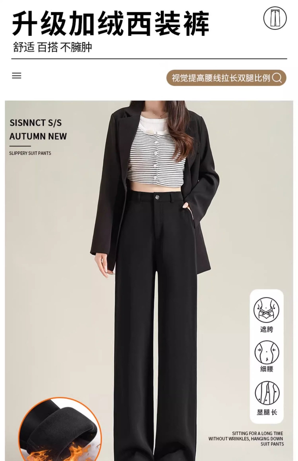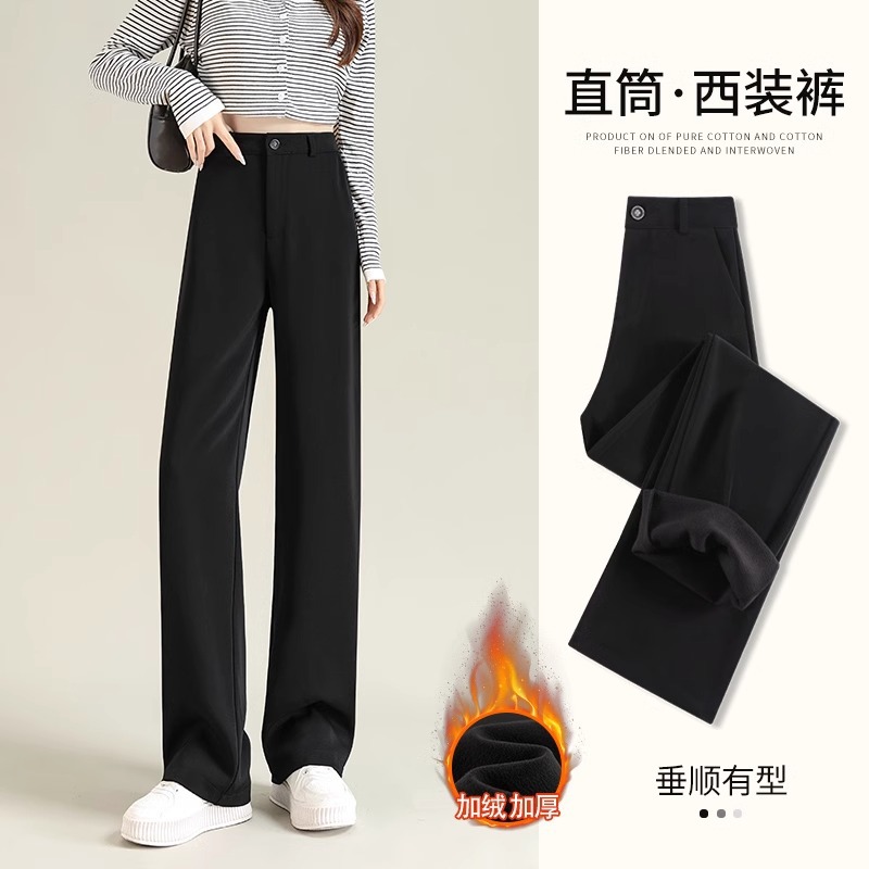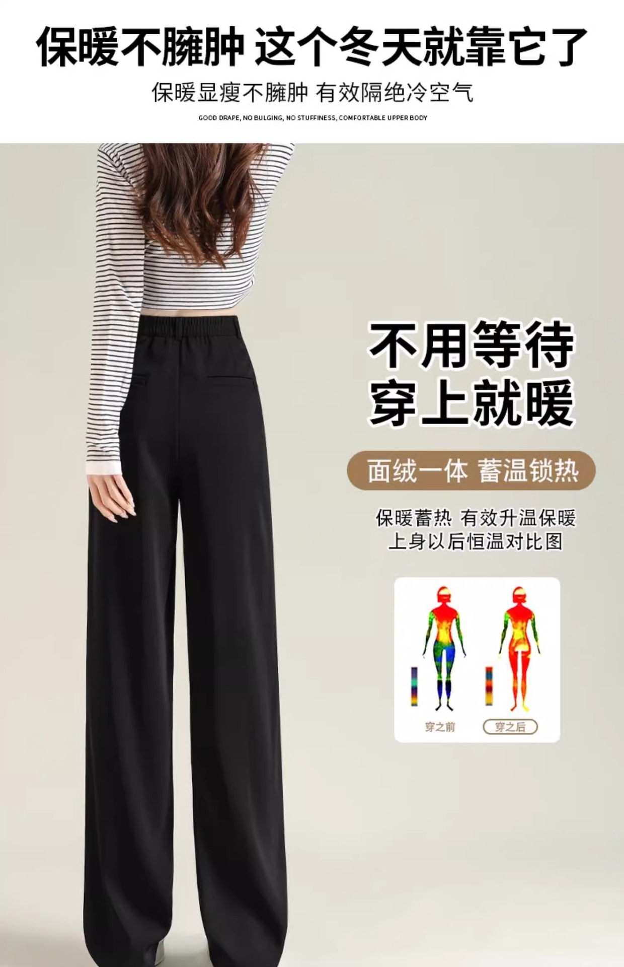 스트레이트 레그 세트 바지 여자 가을과 겨울 2025 새로운 스타일 작은 고급 더깅 넓은 다리 좁은 검은 양털 바지스토어 가기