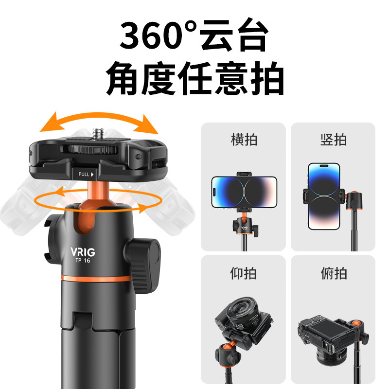 TP16一体式手机自拍杆适用于自拍直播vlog拍摄运动相机落地三脚架