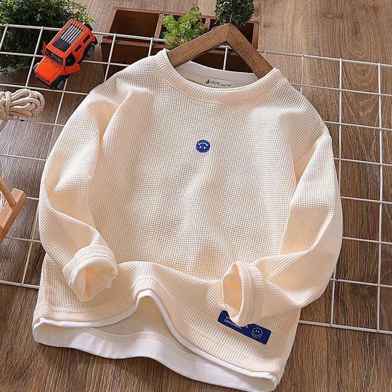 폭발 소년 스웨터 2025 년 봄과 가을 새로운 cuhk 어린이 튀긴 거리 와플 가짜 두 어린이 세대 새로운스토어 가기