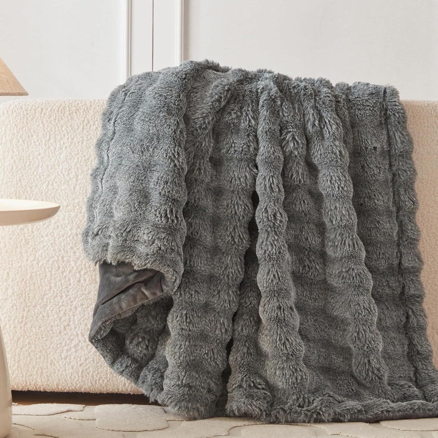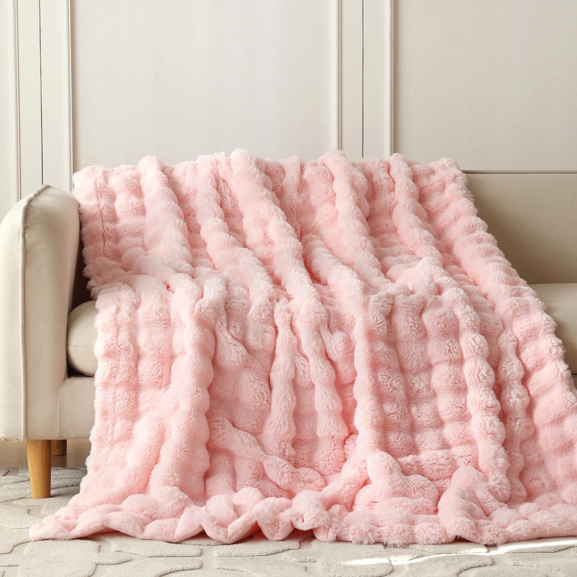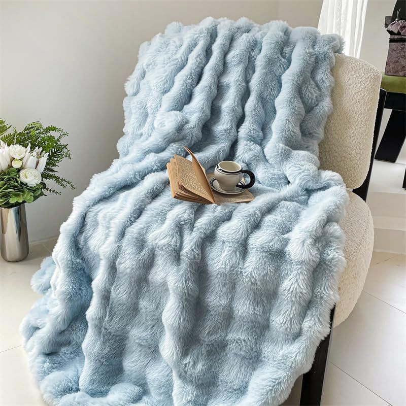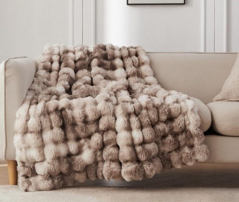 此款毛毯为AB双面加厚毯,A面:托斯卡泡泡绒,B面:短毛兔兔绒