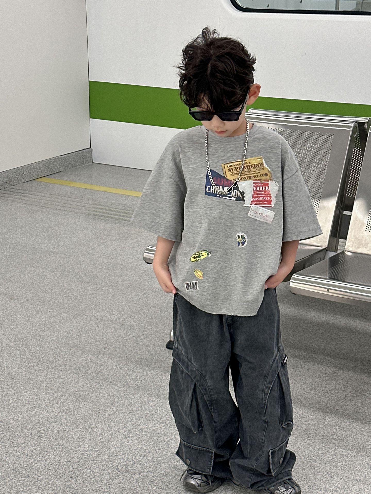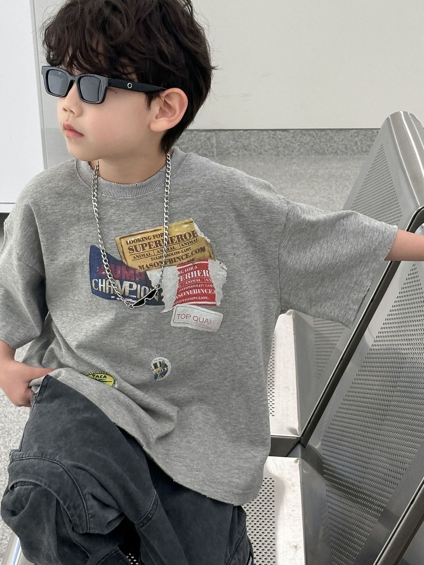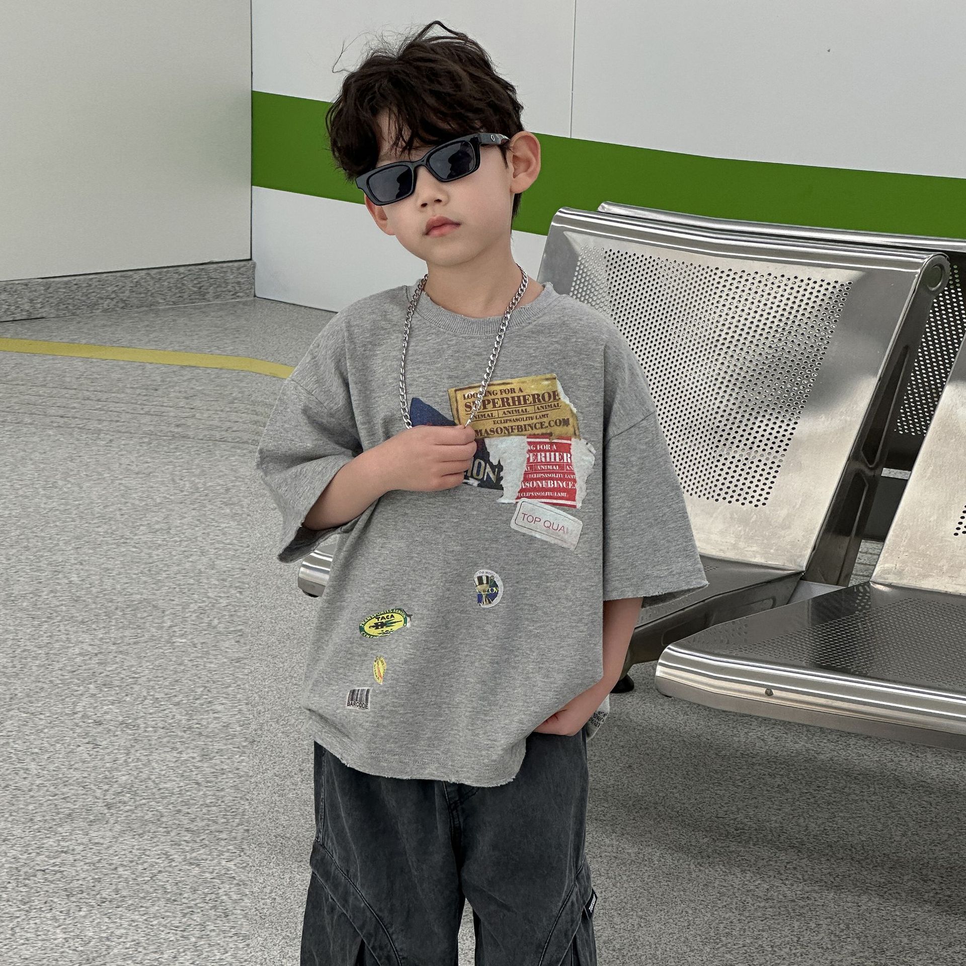 아동복 아동 순면 티셔츠 2025 여름 새 스타일 소년 반팔 한국 스타일상의 다목적 아동 여름 의류 유행 t스토어 가기