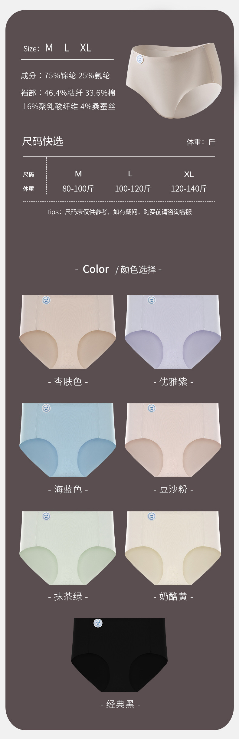 2025 새로운 10A 항균 아이스 실크 속옷 여성의 tracless Mid-Waist Mulberry 실크 Polylactic Acid Mesh Crotch 여성용 속옷스토어 가기