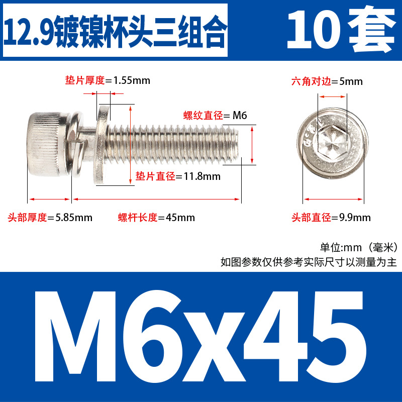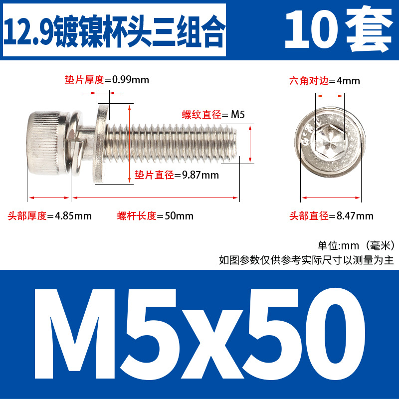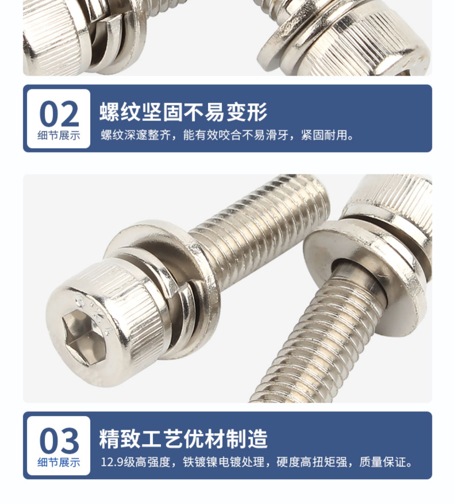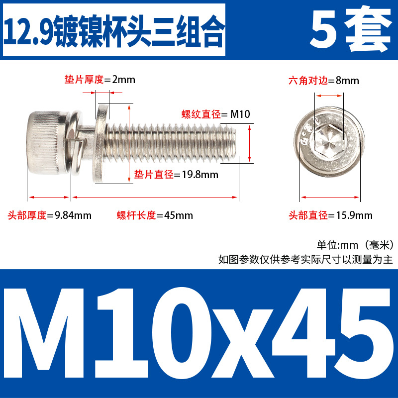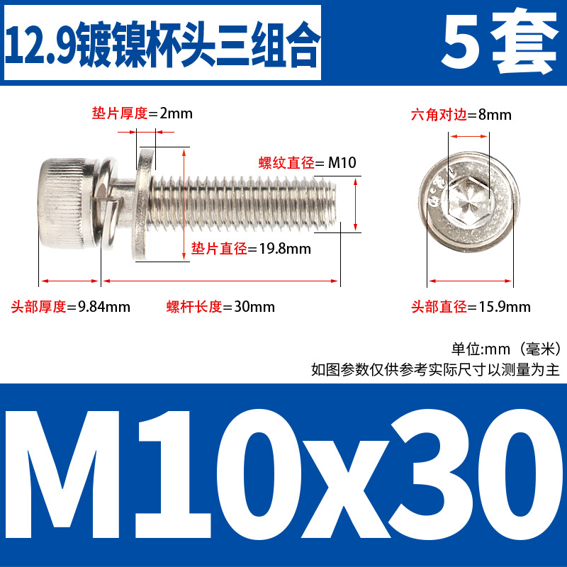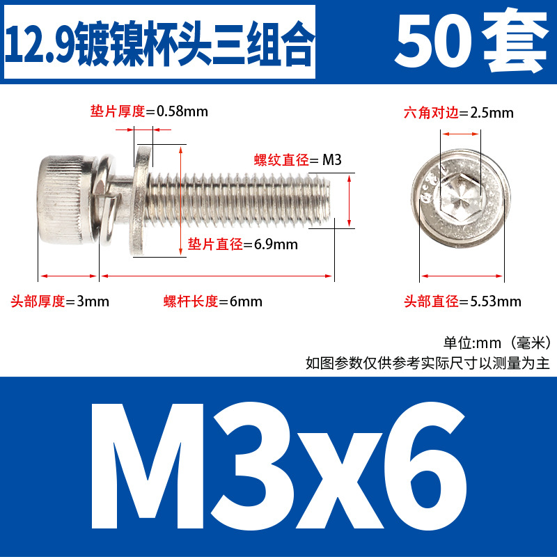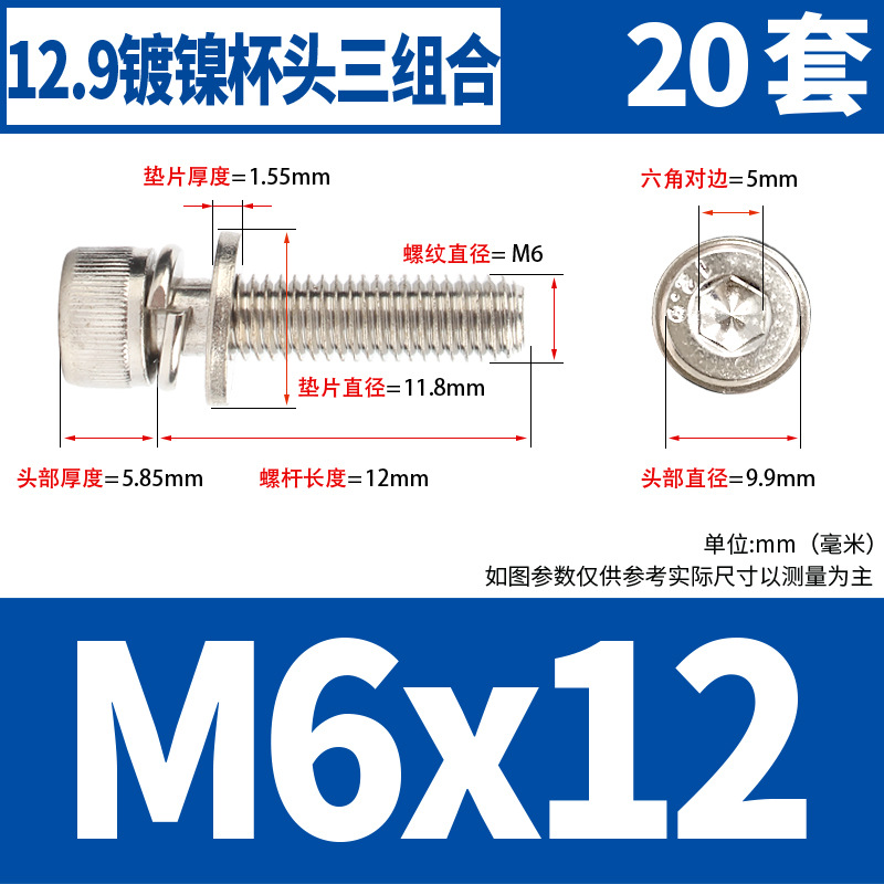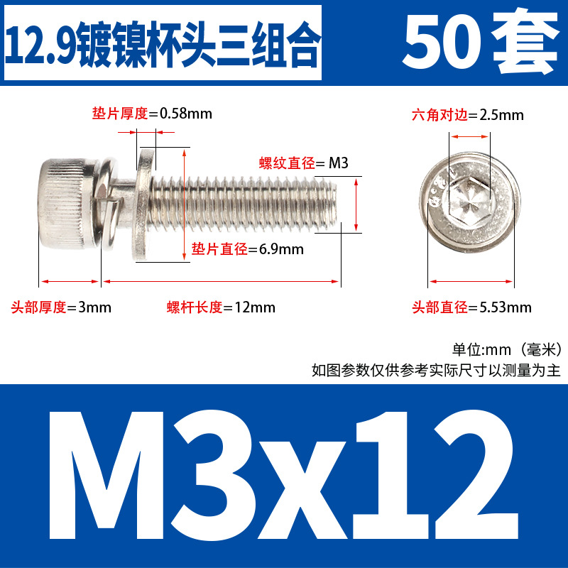 12.9 등급 육각형 소켓 3 조합 스크류 컵 헤드 패드 나사 조합 볼트 M3M4M5M6M8M10M12