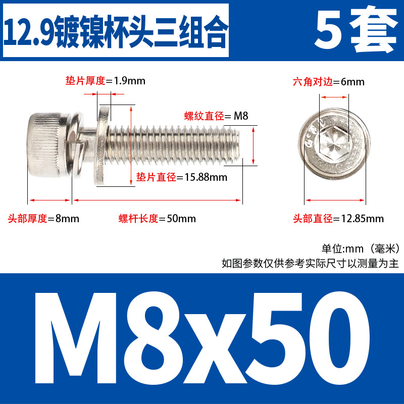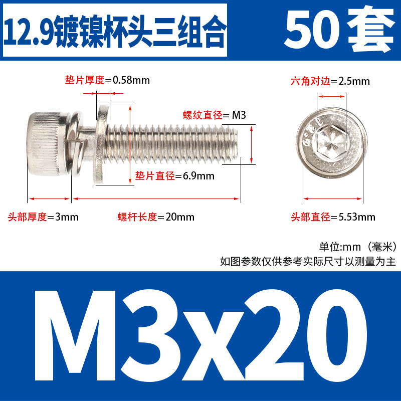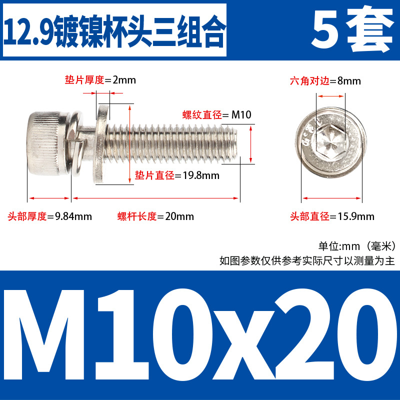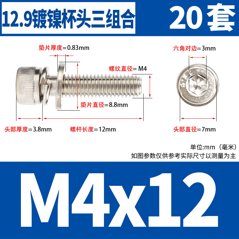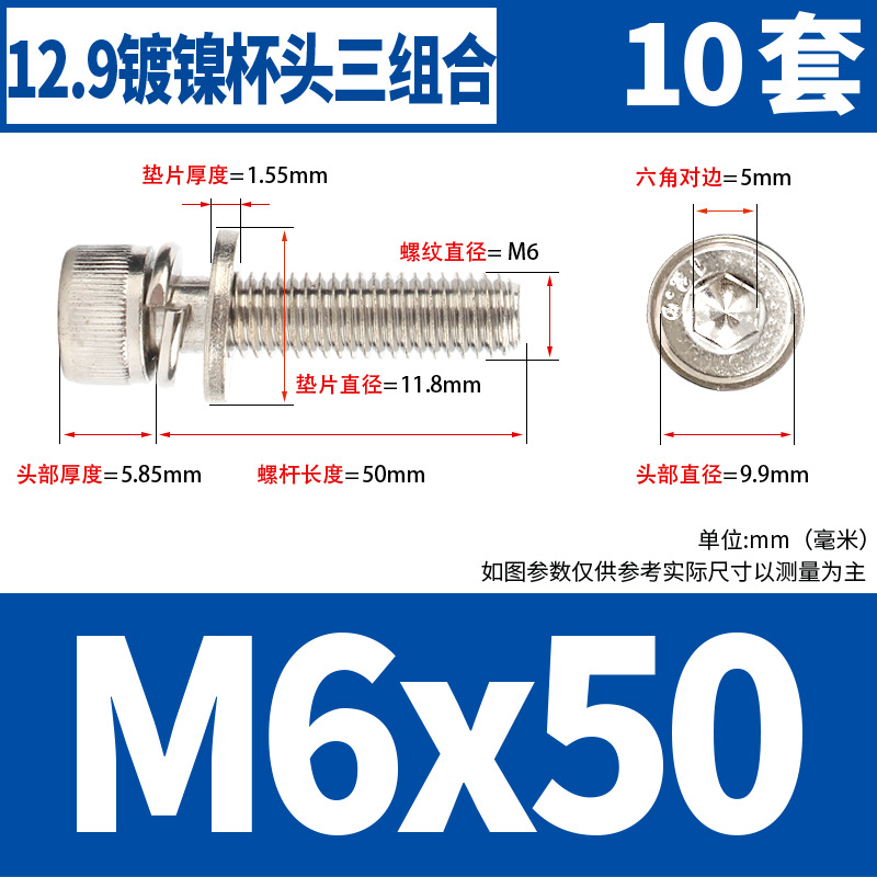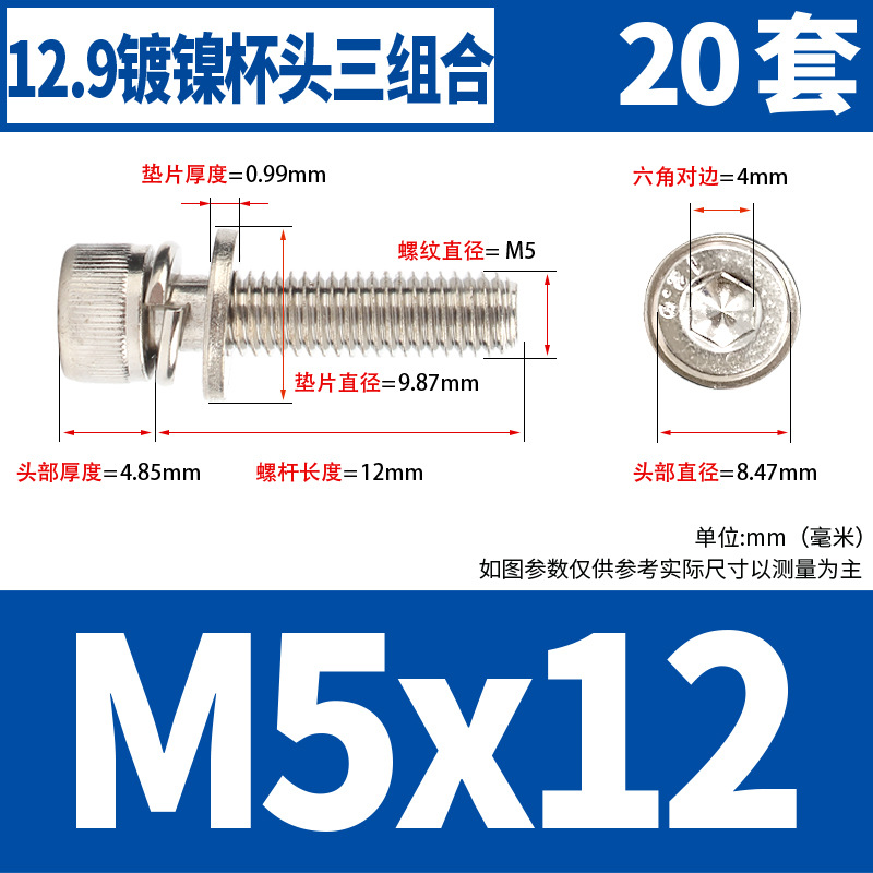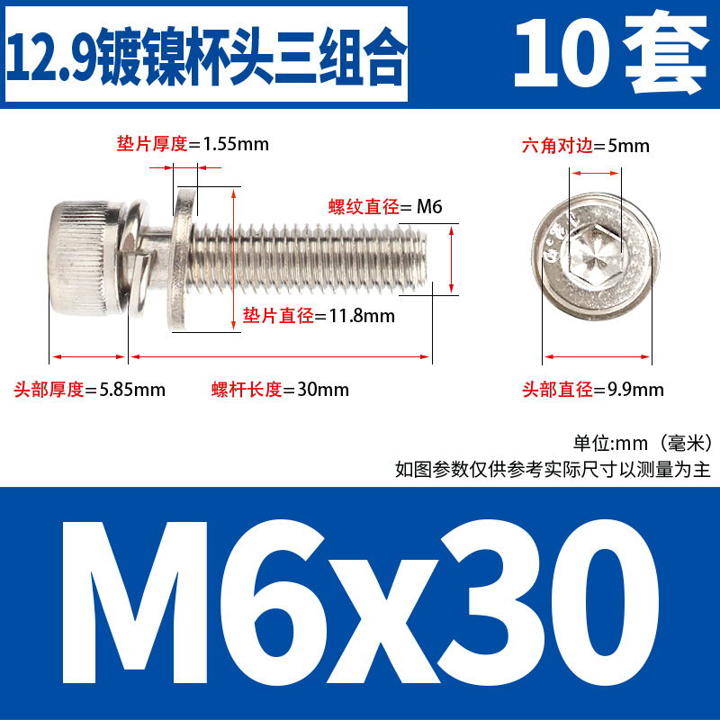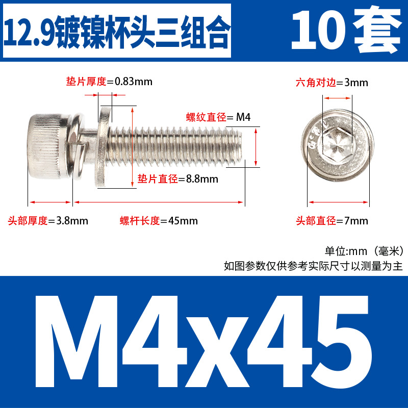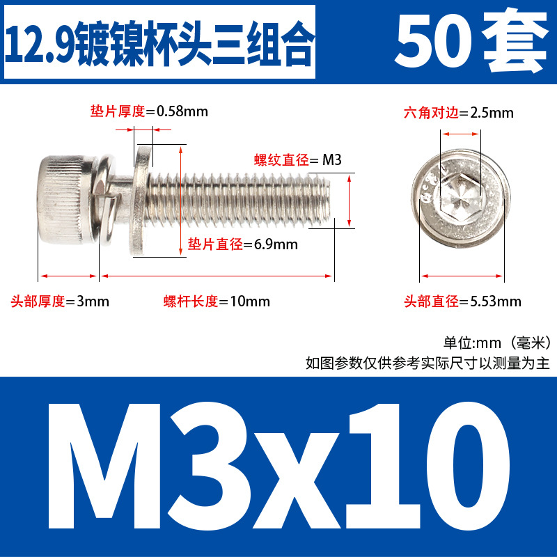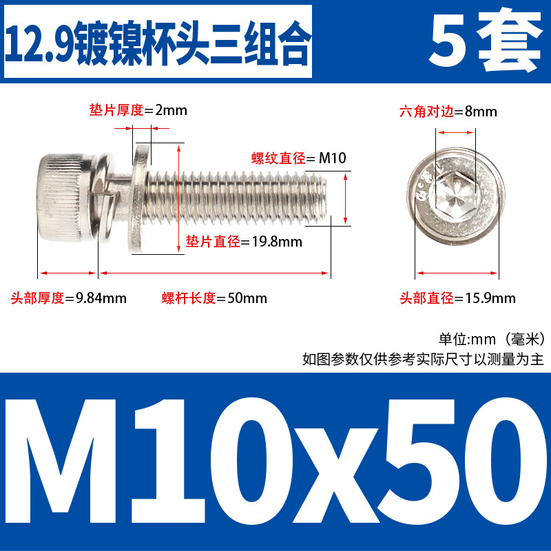 12.9 등급 육각형 소켓 3 조합 스크류 컵 헤드 패드 나사 조합 볼트 M3M4M5M6M8M10M12