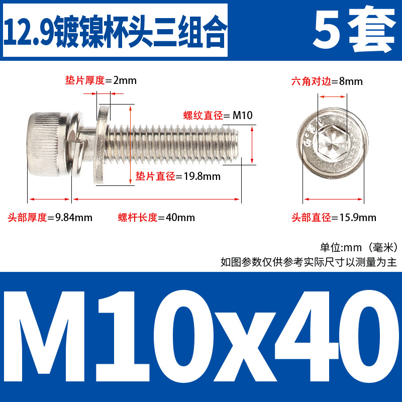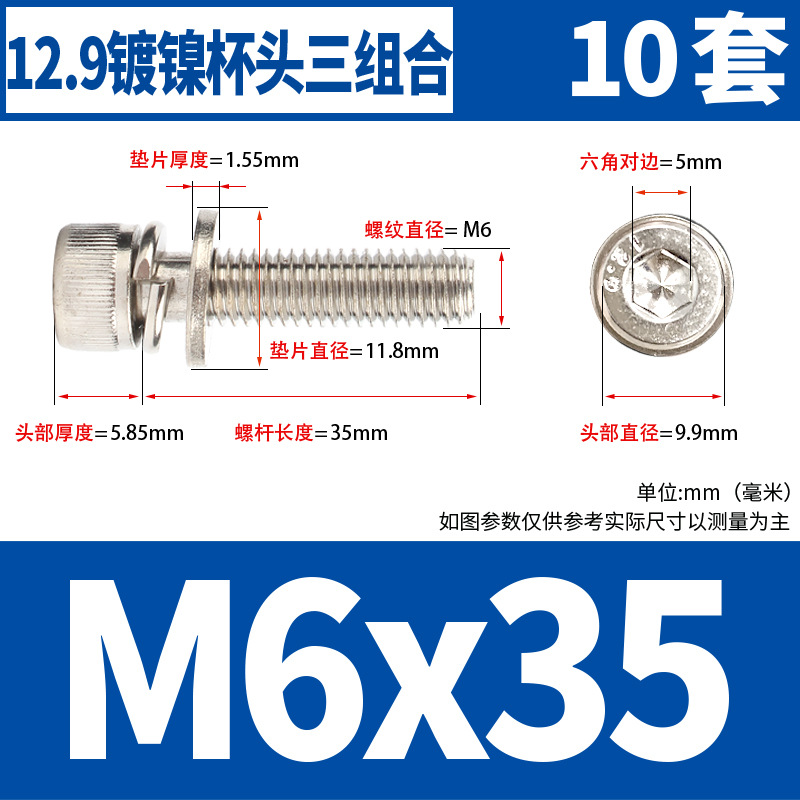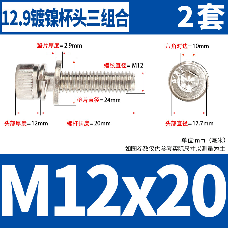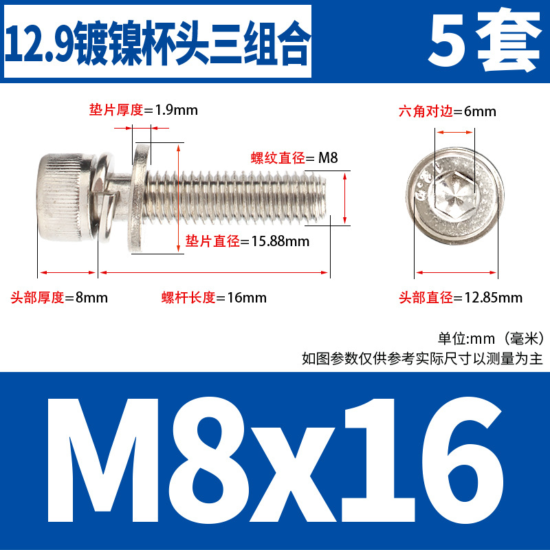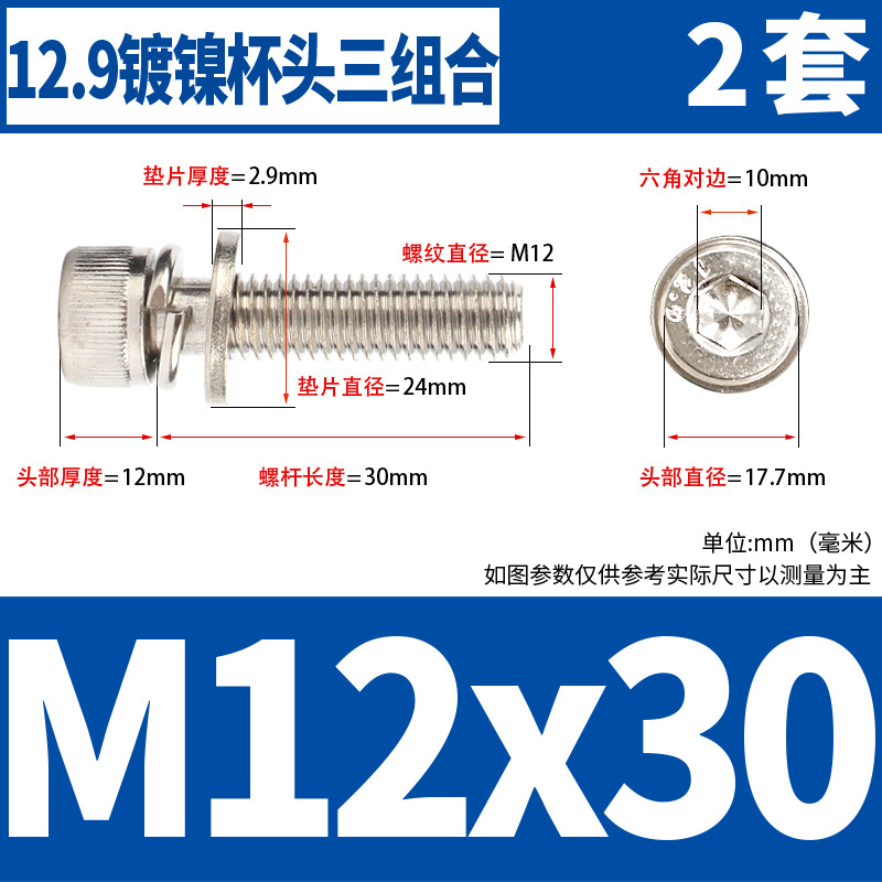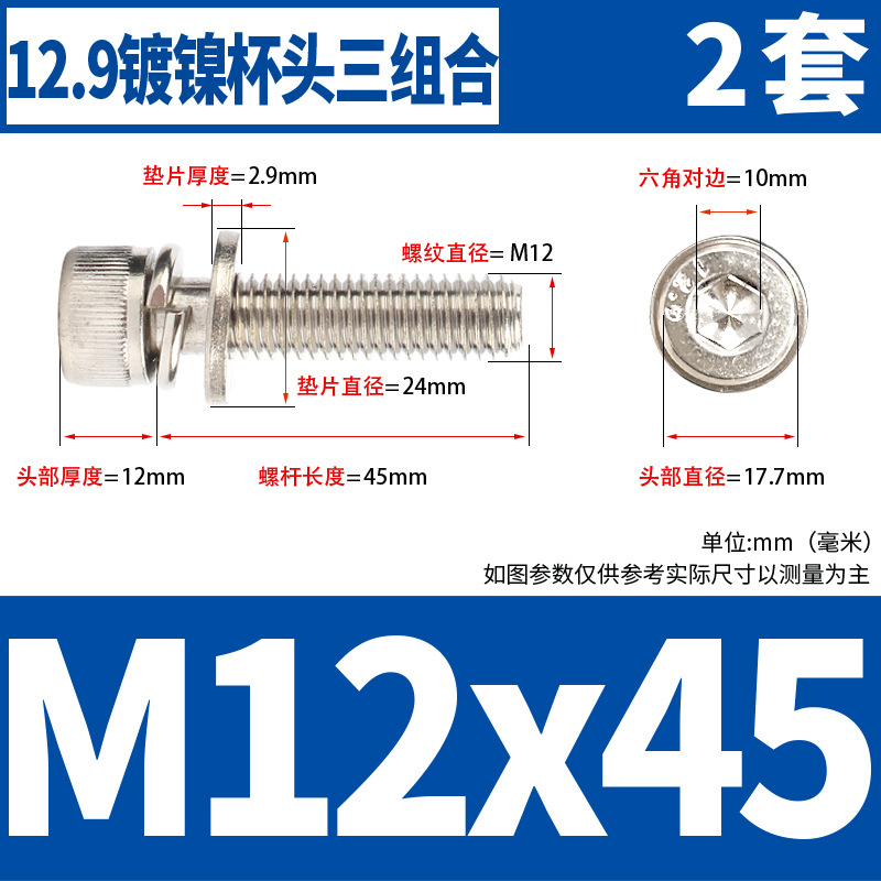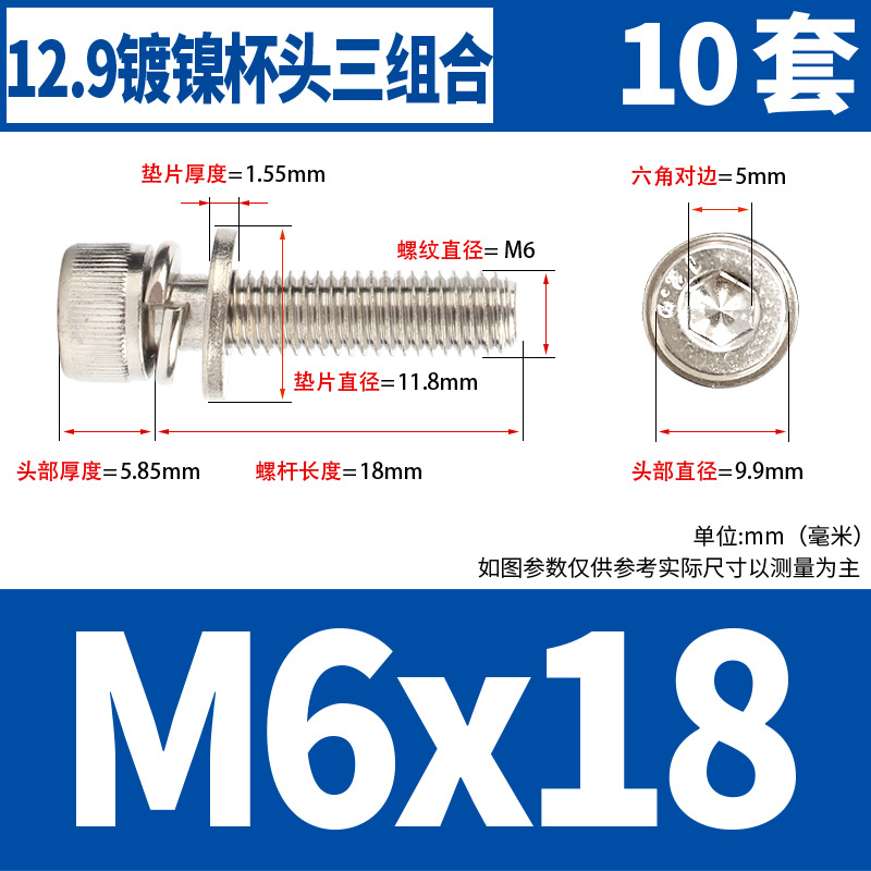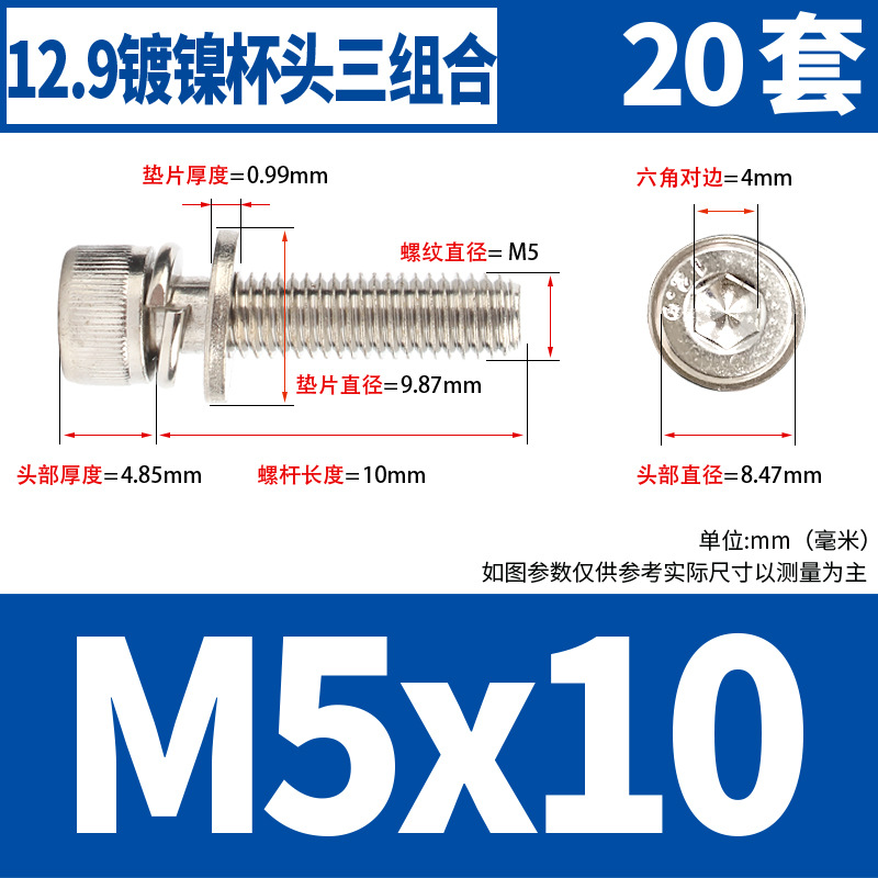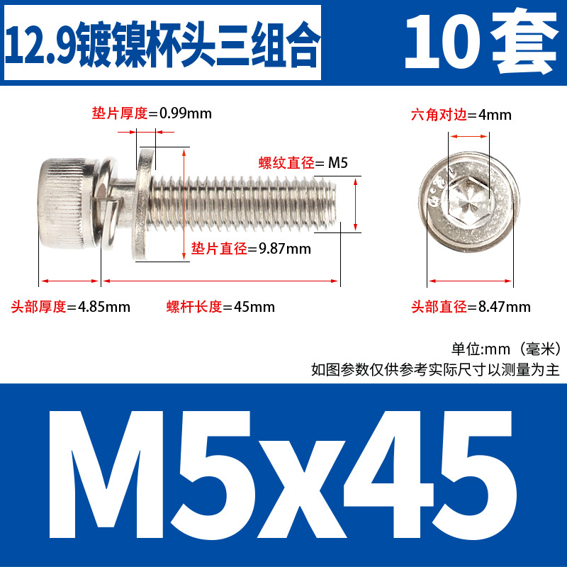 12.9 등급 육각형 소켓 3 조합 스크류 컵 헤드 패드 나사 조합 볼트 M3M4M5M6M8M10M12