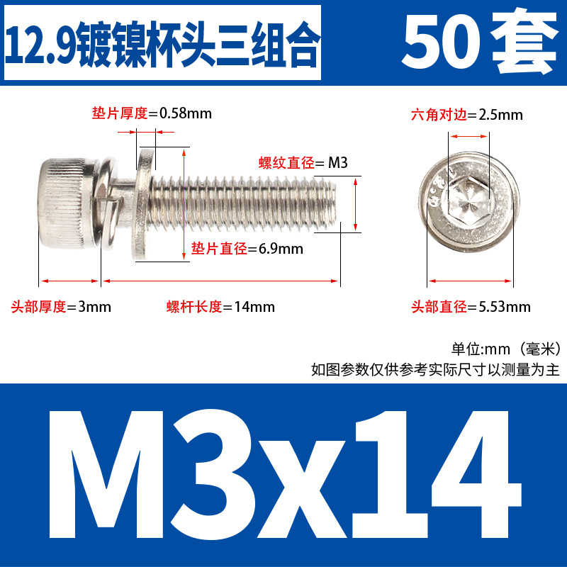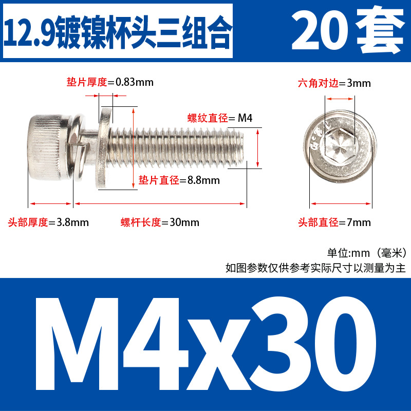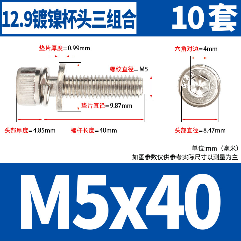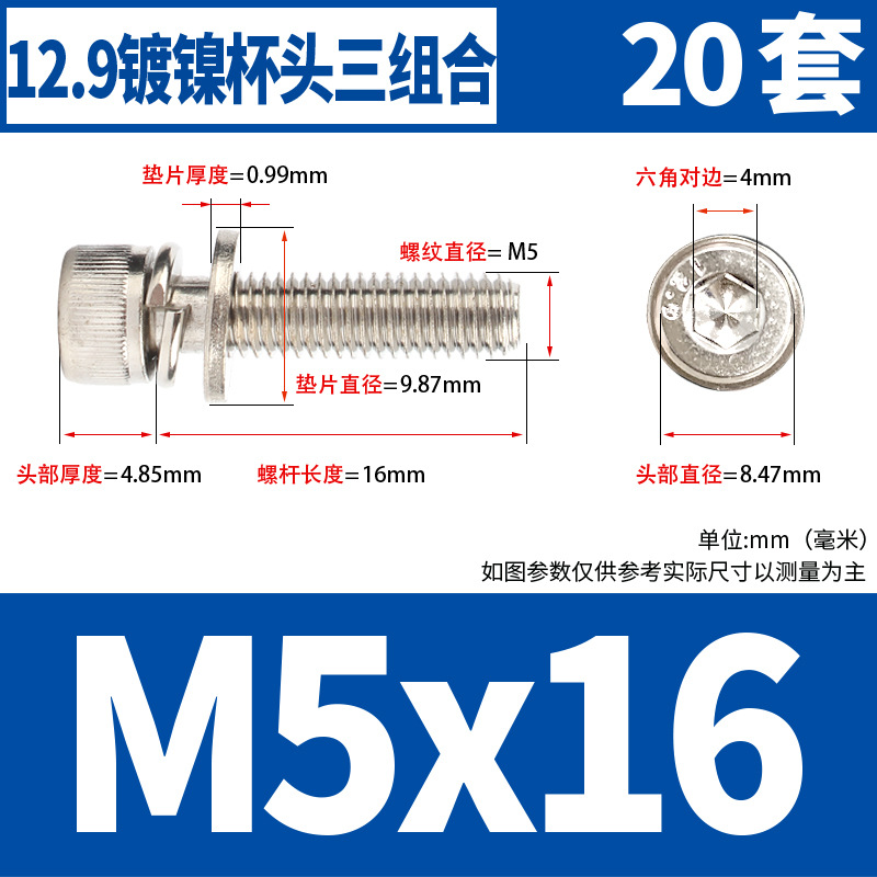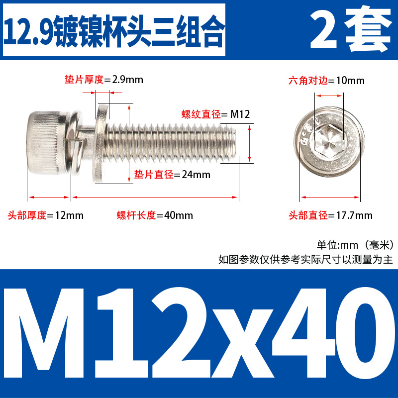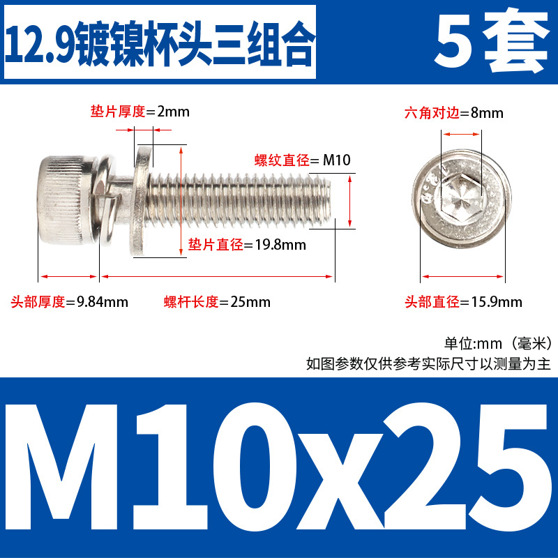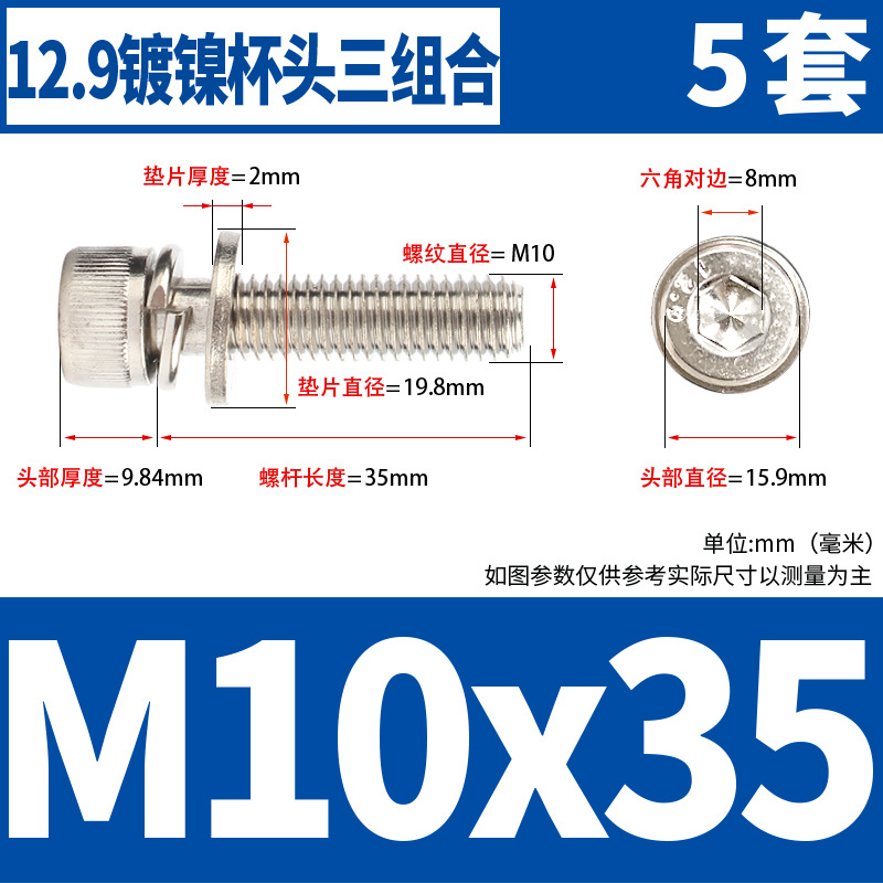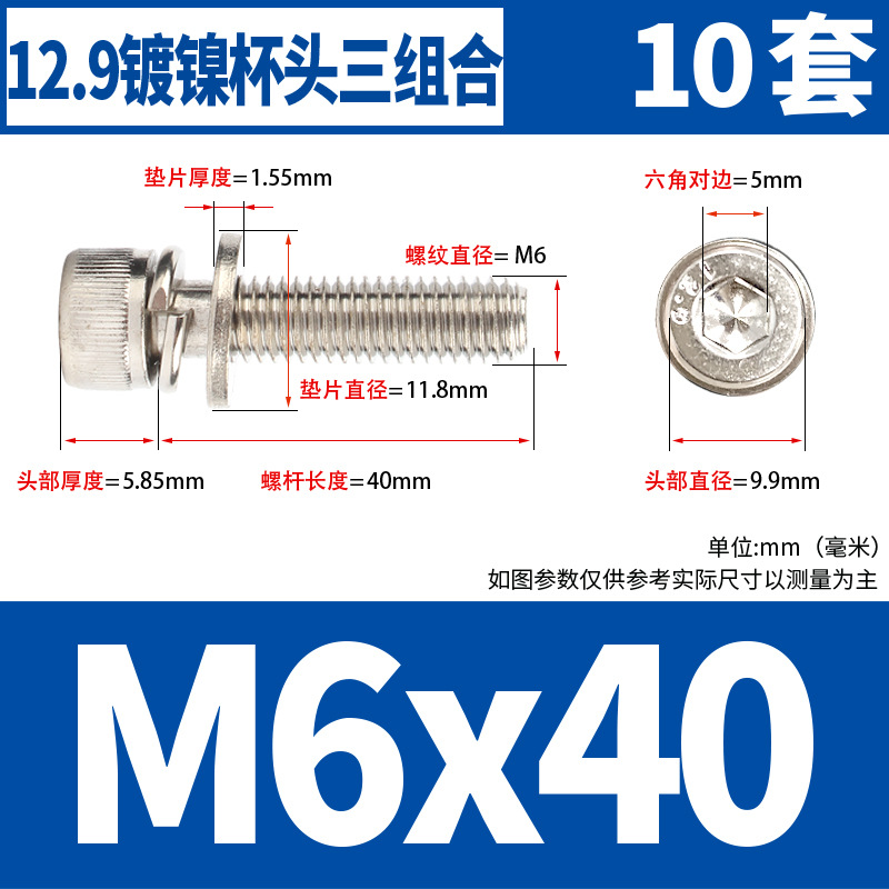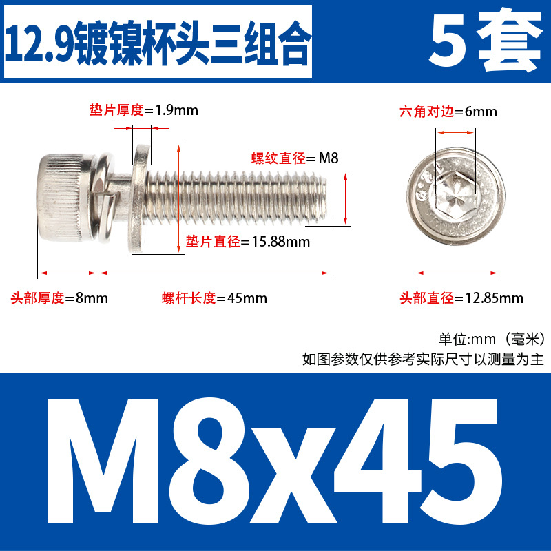 12.9 등급 육각형 소켓 3 조합 스크류 컵 헤드 패드 나사 조합 볼트 M3M4M5M6M8M10M12