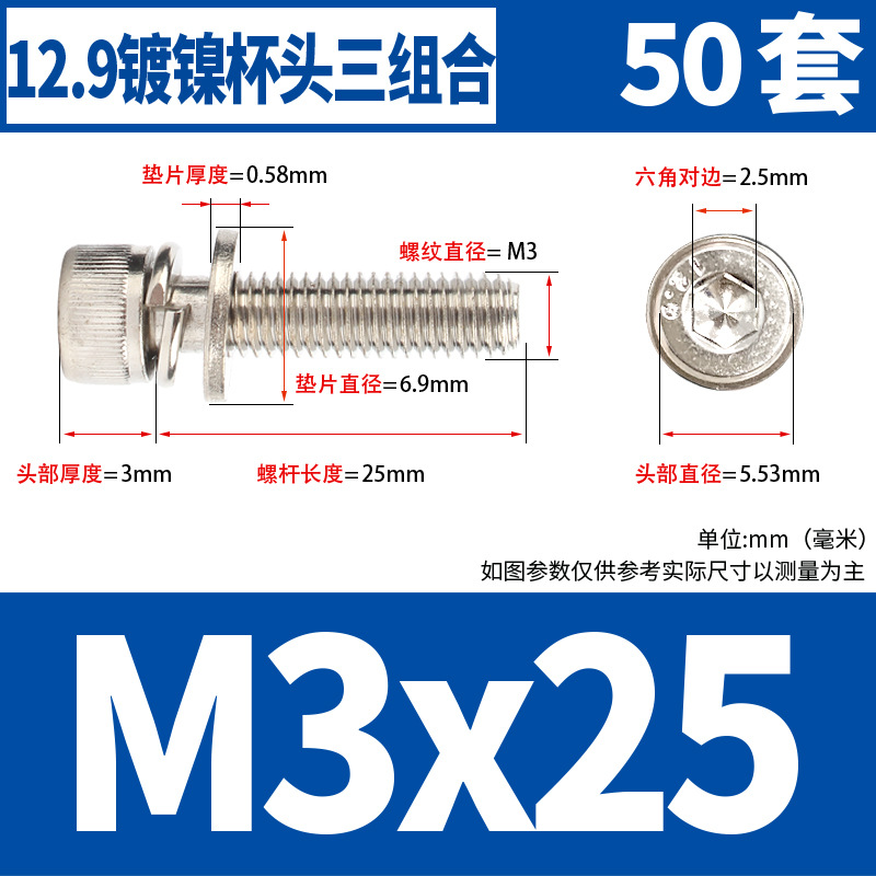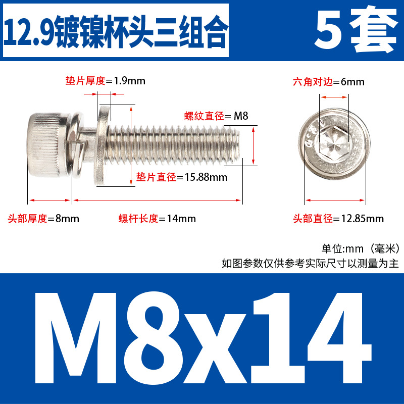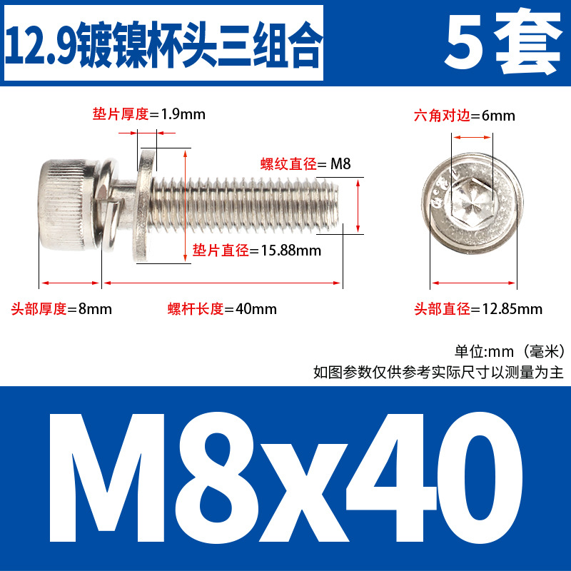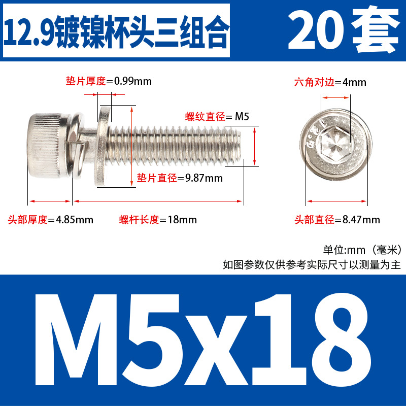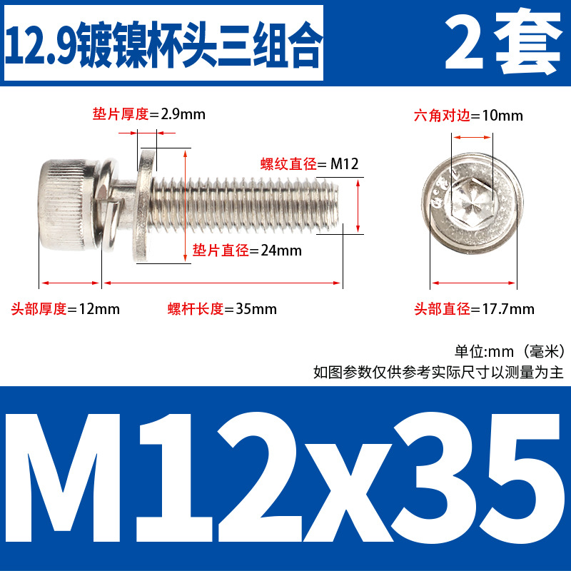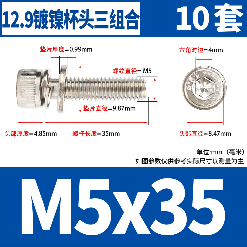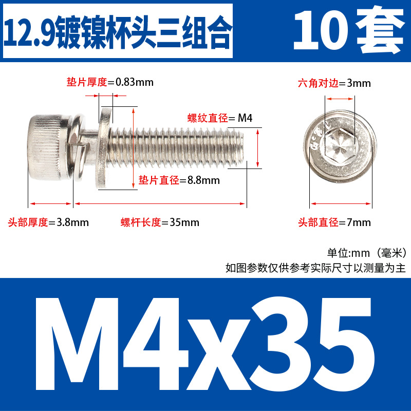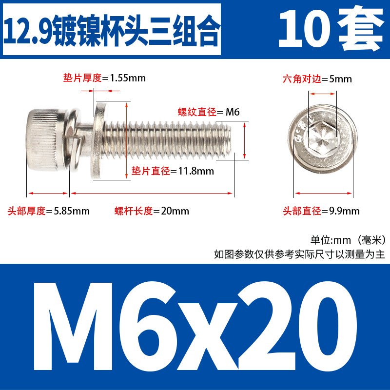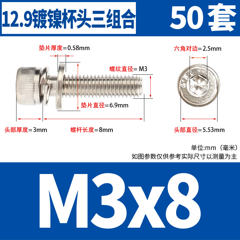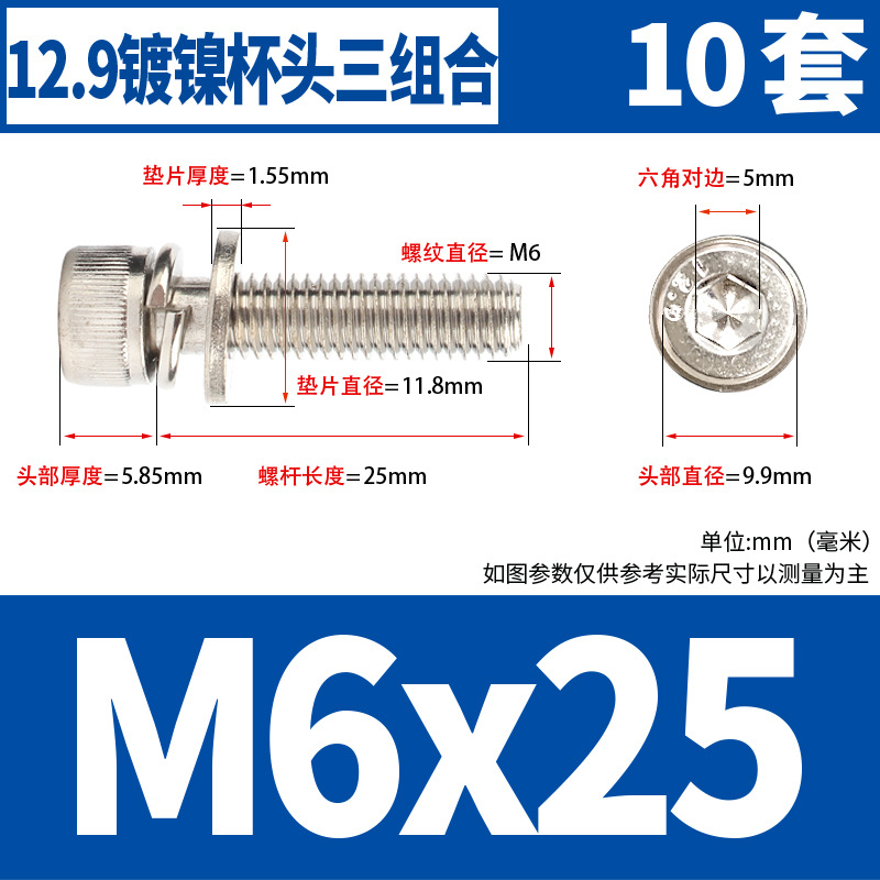12.9 등급 육각형 소켓 3 조합 스크류 컵 헤드 패드 나사 조합 볼트 M3M4M5M6M8M10M12