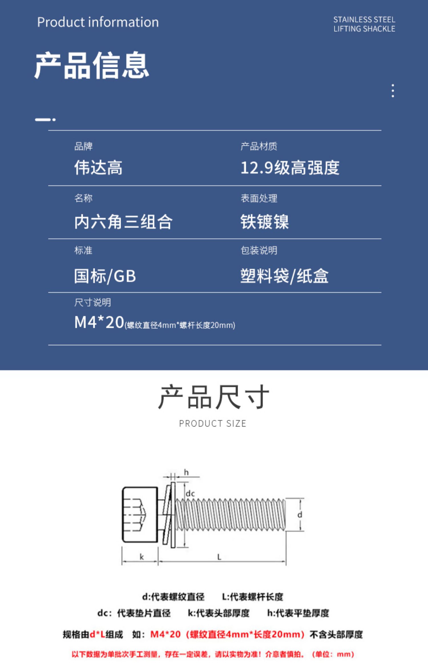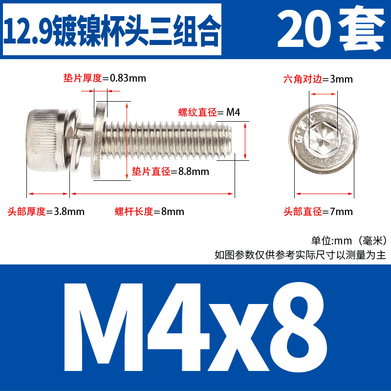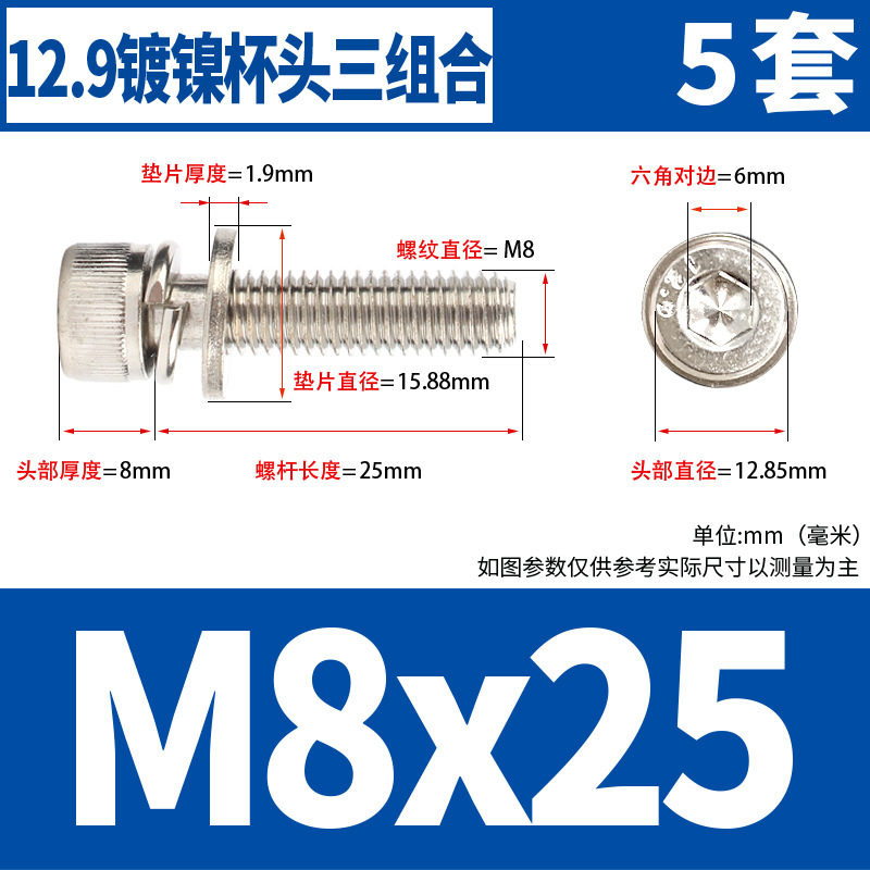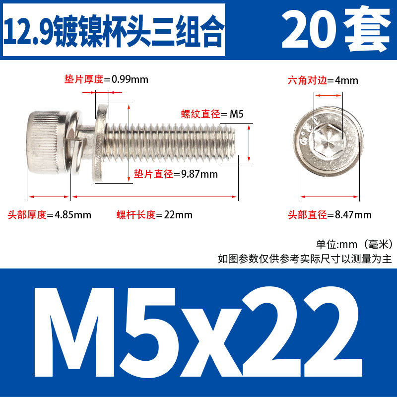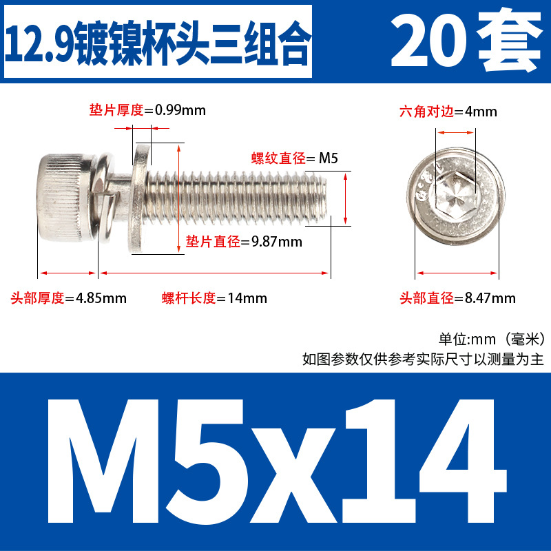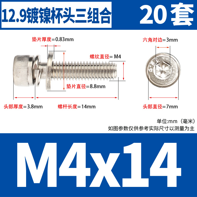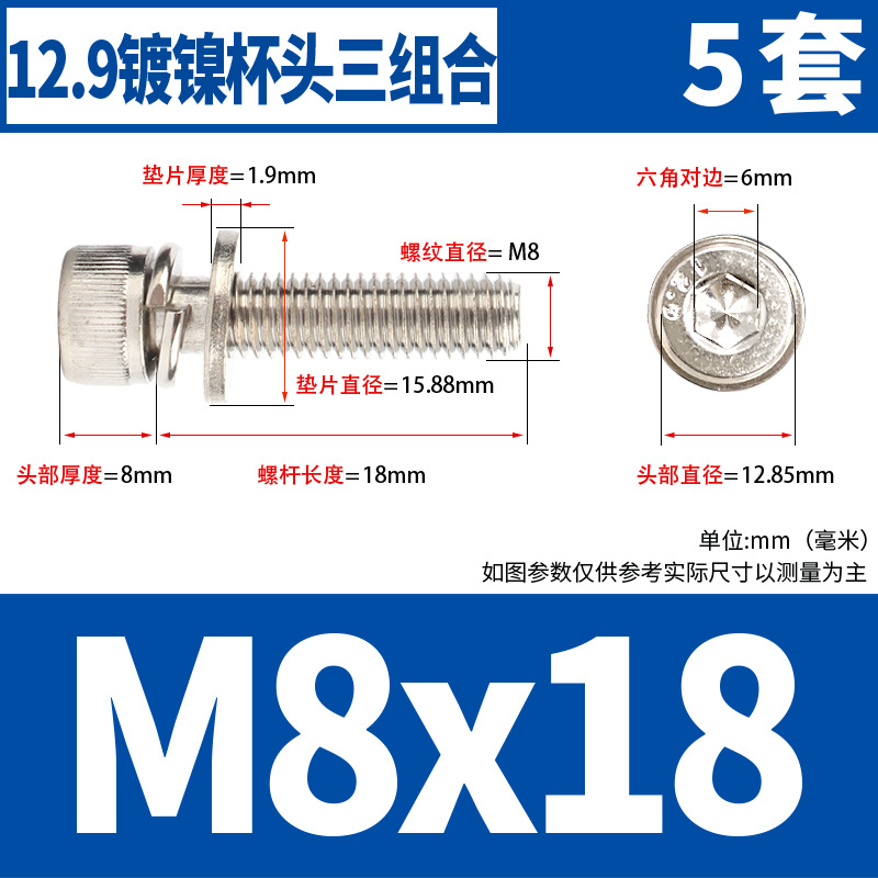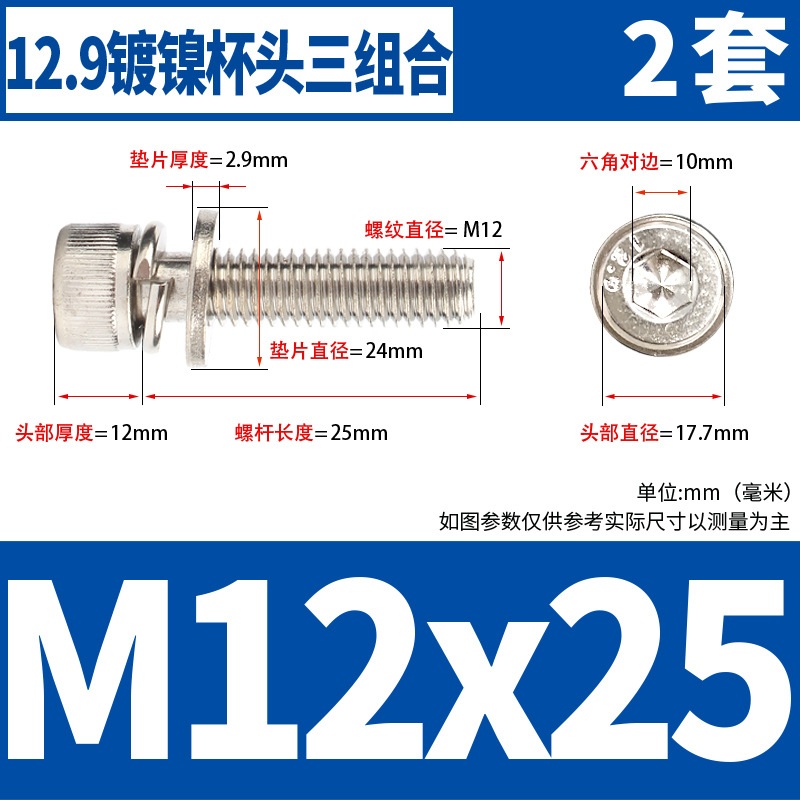 12.9 등급 육각형 소켓 3 조합 스크류 컵 헤드 패드 나사 조합 볼트 M3M4M5M6M8M10M12