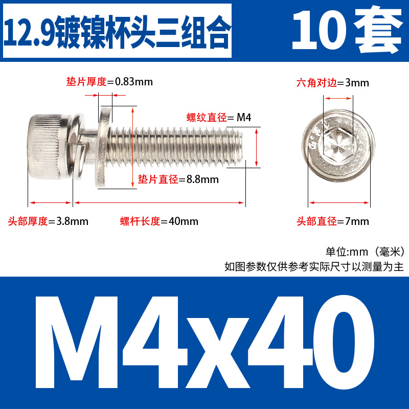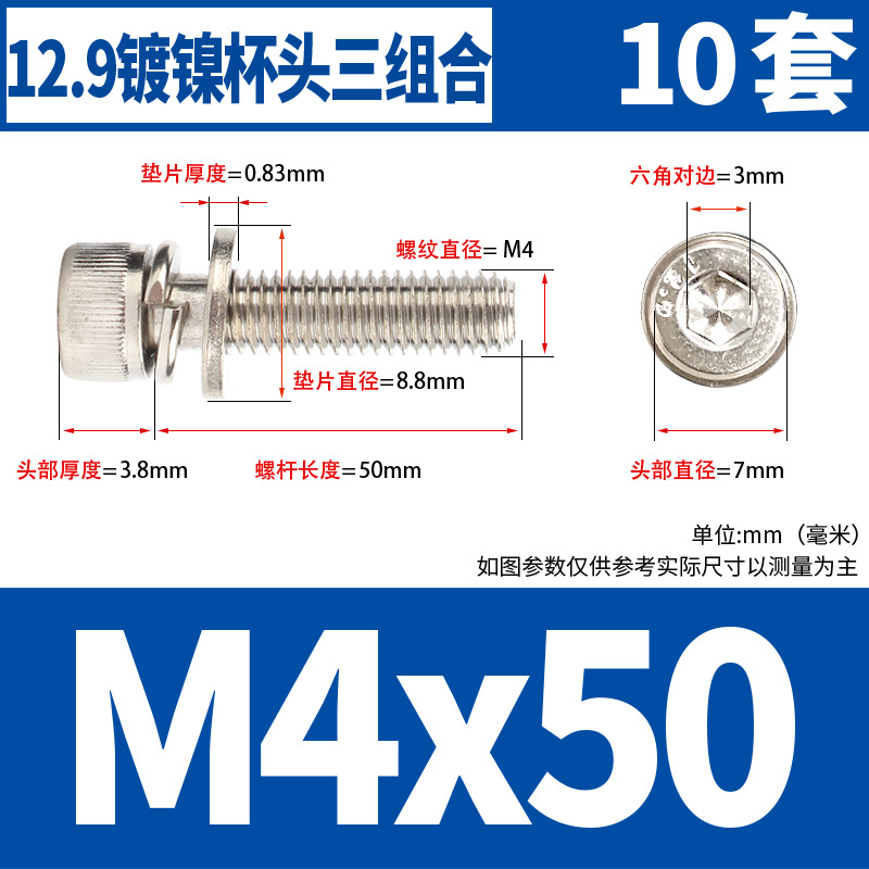 12.9 등급 육각형 소켓 3 조합 스크류 컵 헤드 패드 나사 조합 볼트 M3M4M5M6M8M10M12스토어 가기