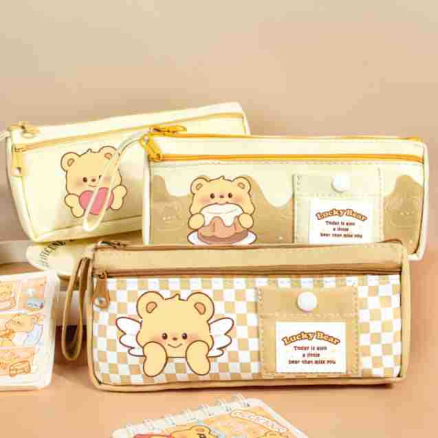 중학교 및 초등학교 학생을위한 치즈 베어 연필 가방 대용량 창조적 인 문구 상자 높은 색상 가치 귀여운 문구 가방 연필 상자스토어 가기