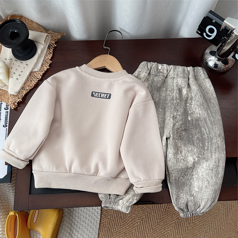 아동복 봄웨어 소년의 세트 2025 새로운 잘 생긴 넥타이 염색 땀 어린 이용 봄 세트 아기 소년을위한 투피스 세트스토어 가기