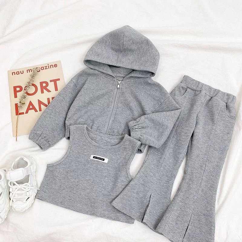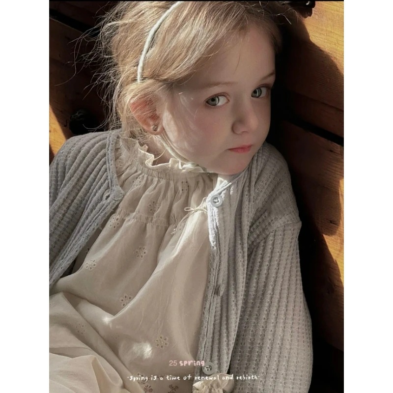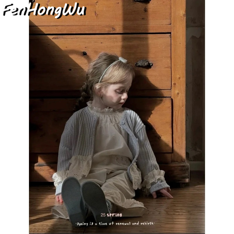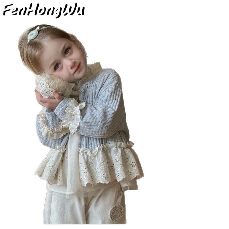 [핑크 집] 한국 아동복 소녀 세트 봄 새 어린이 모리 스티칭 레이스 카디건 넓은 다리 바지스토어 가기