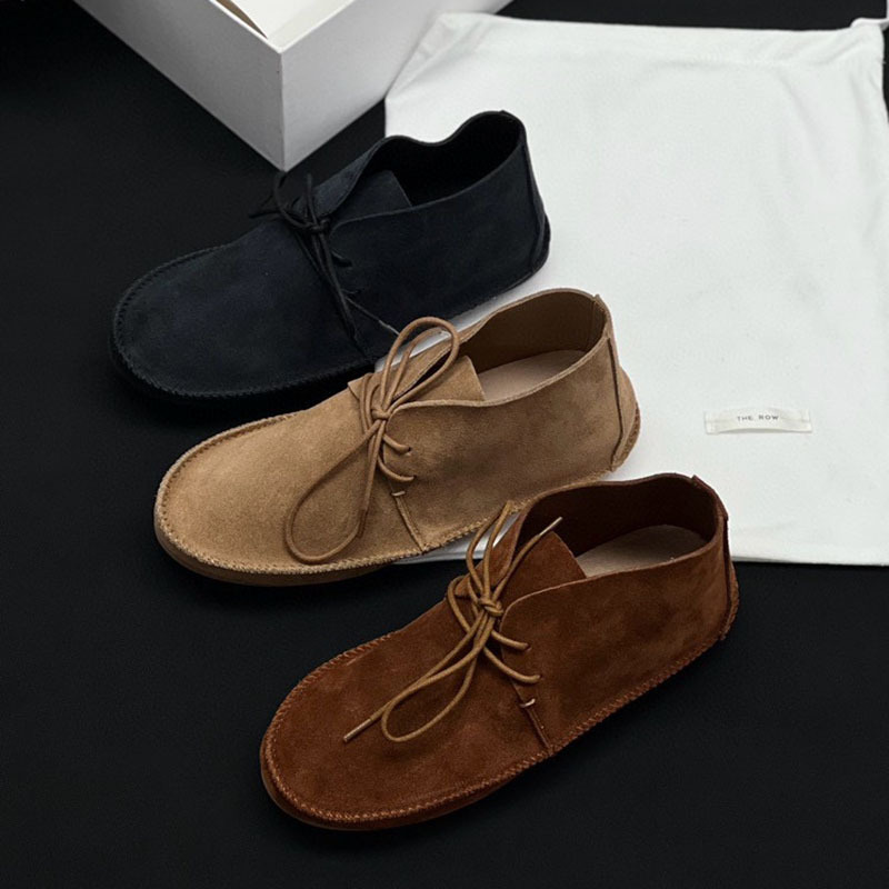 새로운 * 행 레이스 업 가죽 발목 부츠 Cowhide Old Money 스타일 레트로 레이스 업 스웨이드 소프트 하단 딥 입 싱글 슈즈 정품 가죽