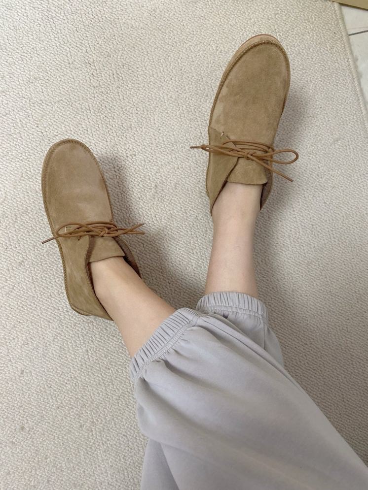 새로운 * 행 레이스 업 가죽 발목 부츠 Cowhide Old Money 스타일 레트로 레이스 업 스웨이드 소프트 하단 딥 입 싱글 슈즈 정품 가죽스토어 가기