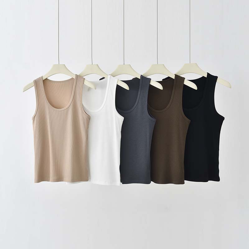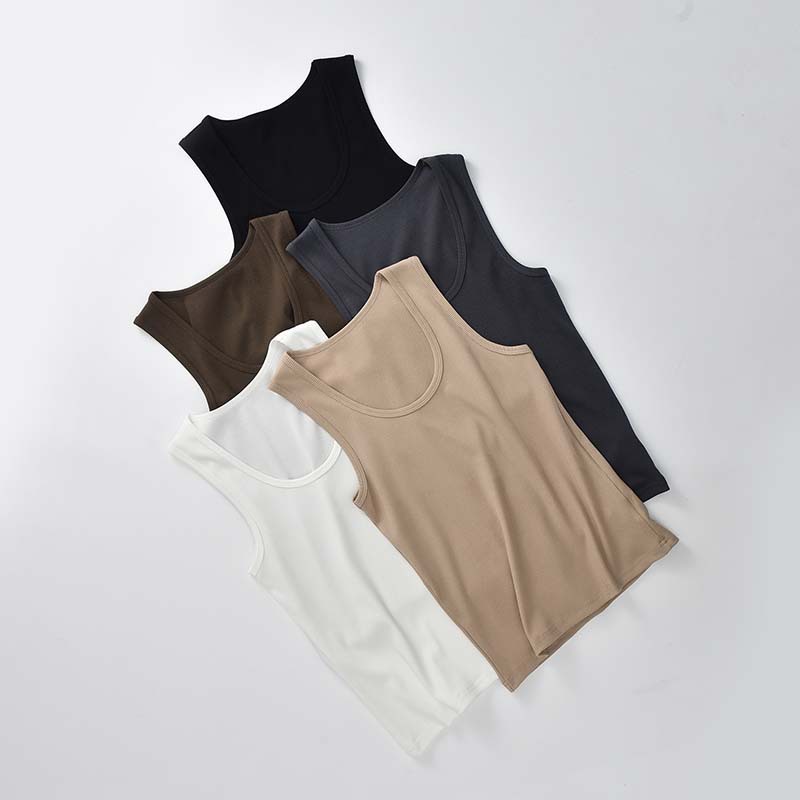 서스펜더 U-neck Vest 여성의 여름 외부 착용 내복 안티 러닝 라이트 차단 Paramilis Youke Silk Thread Cotton Base White Top스토어 가기
