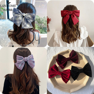 大蝴蝶结发夹 韩式人鱼珠光纱飘带女JK格子ins发卡Lolita头发饰品