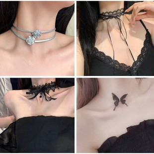 黑色蕾丝蝴蝶结项链女choker项圈锁骨链小众辣妹绑带颈链脖子配饰