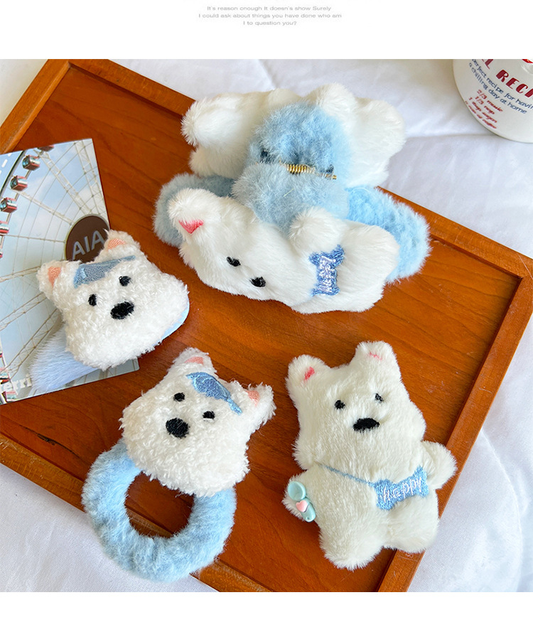 웨스트 하이랜드 봉제 강아지 머리핀 높은 색상 값 귀여운 부드러운 귀여운 소녀 달콤한 소녀 학생 헤어 밴드 액세서리 마오 마오
