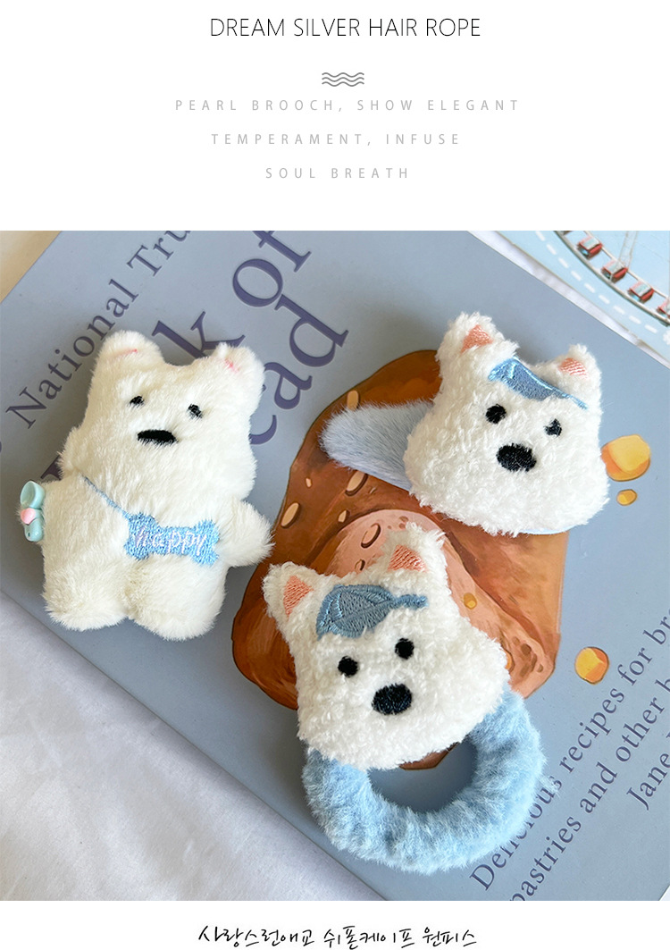 웨스트 하이랜드 봉제 강아지 머리핀 높은 색상 값 귀여운 부드러운 귀여운 소녀 달콤한 소녀 학생 헤어 밴드 액세서리 마오 마오스토어 가기