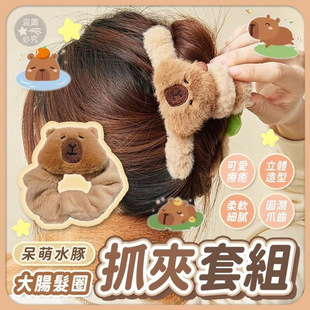 卡皮巴拉抓夹女大号鲨鱼夹美拉德毛绒大肠发圈抓娃娃机小乌龟发夹