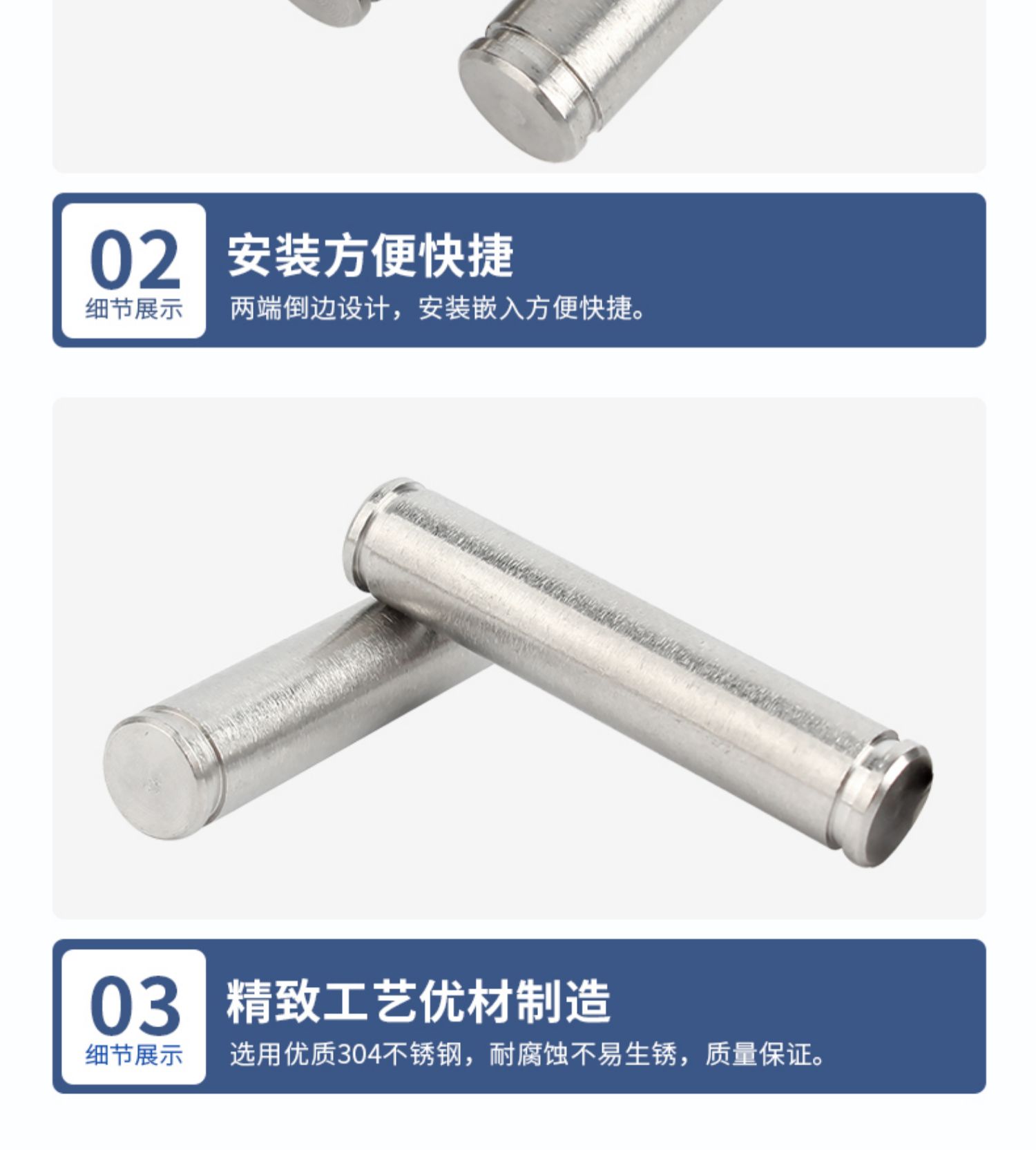 304 스테인레스 스틸 슬롯 핀 샤프트 2 개의 이중 헤드 서클 핀 샤프트 포지셔닝 원통형 핀 고정 링 M3M4M5M6M12