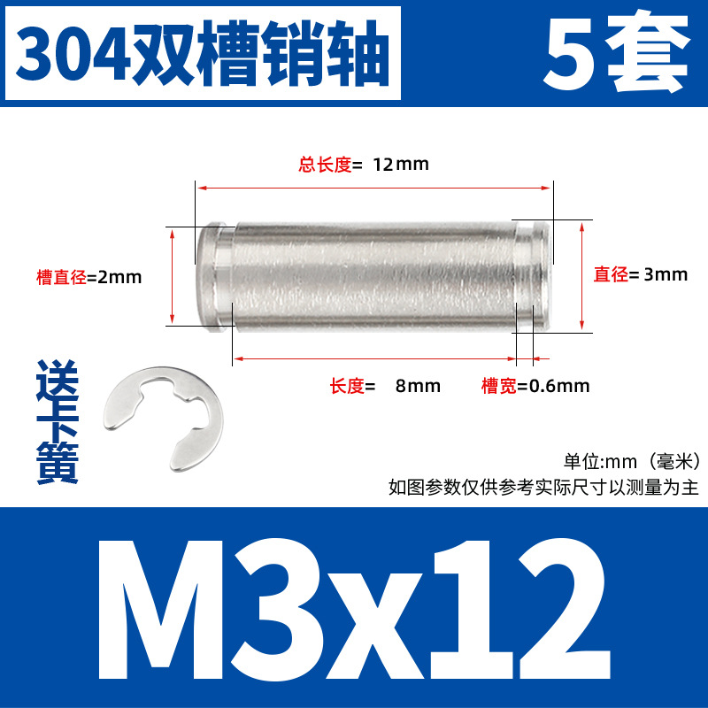 304 스테인레스 스틸 슬롯 핀 샤프트 2 개의 이중 헤드 서클 핀 샤프트 포지셔닝 원통형 핀 고정 링 M3M4M5M6M12스토어 가기