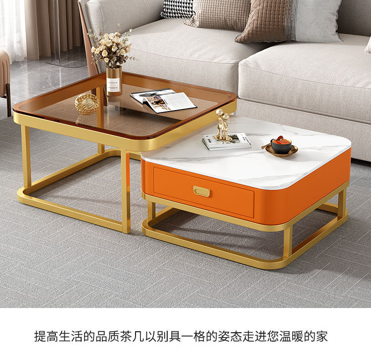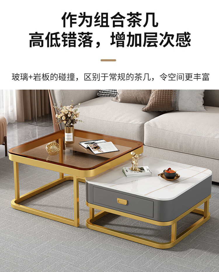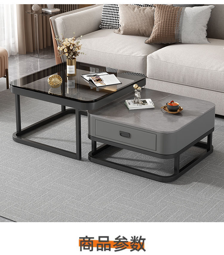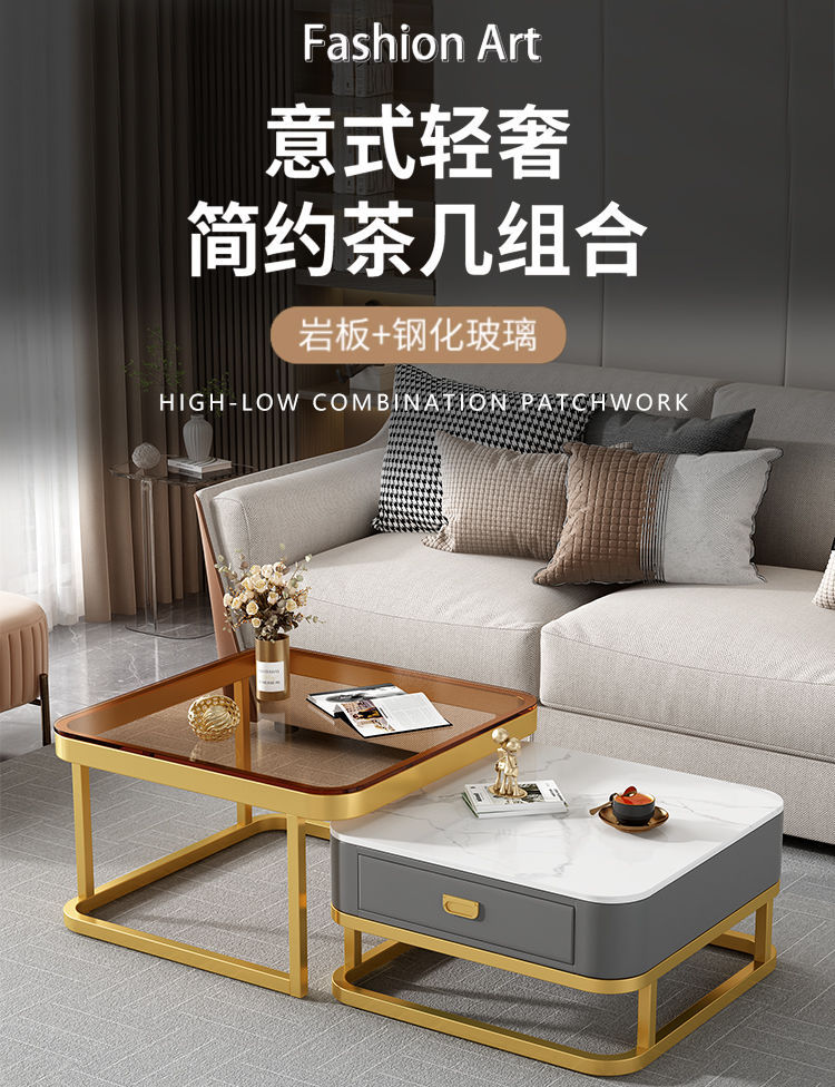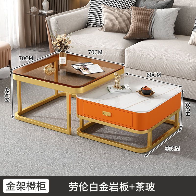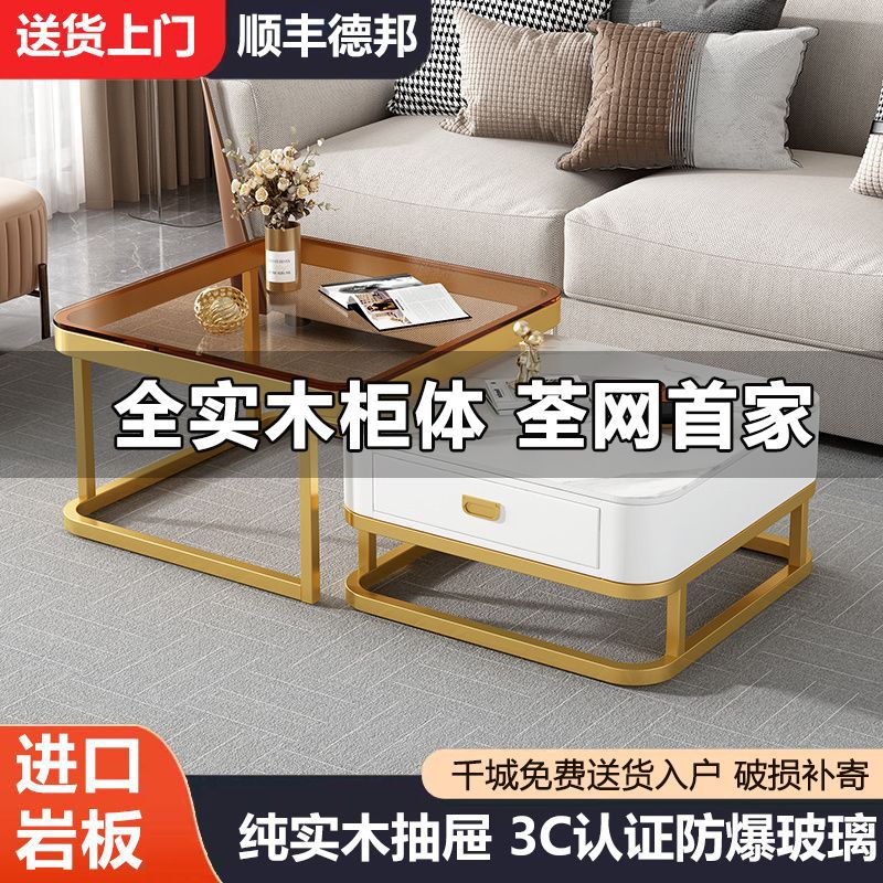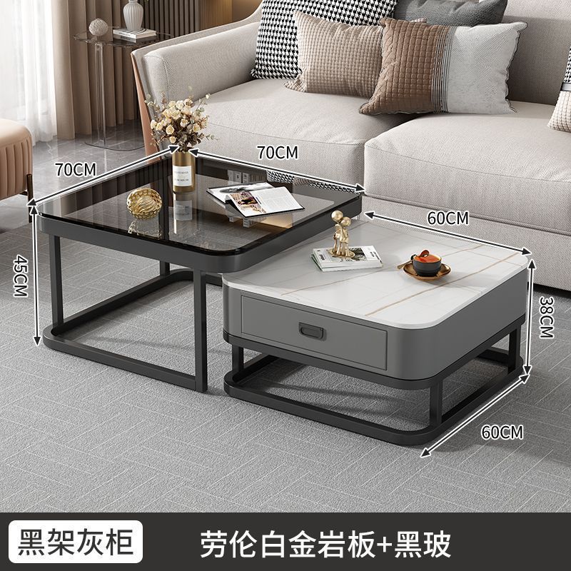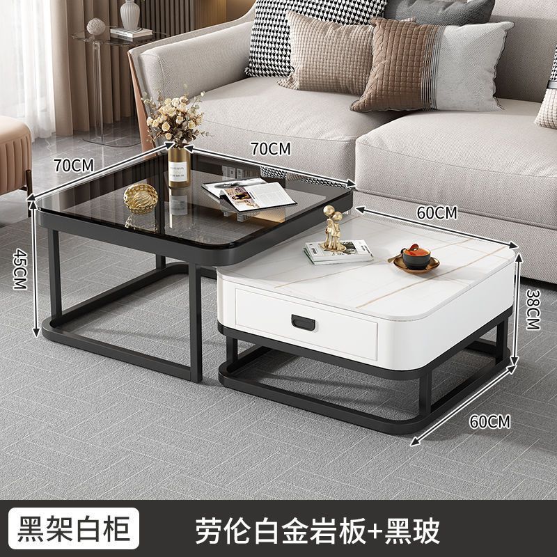 록 플레이트 유리 저장 커피 테이블 작은 아파트 TV 내각 조합 가정용 거실 광장 차 테이블 2024 새로운 스타일스토어 가기