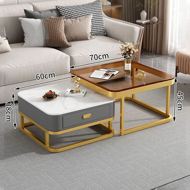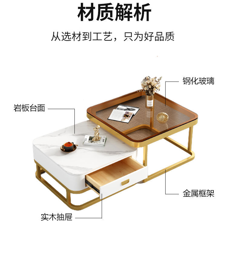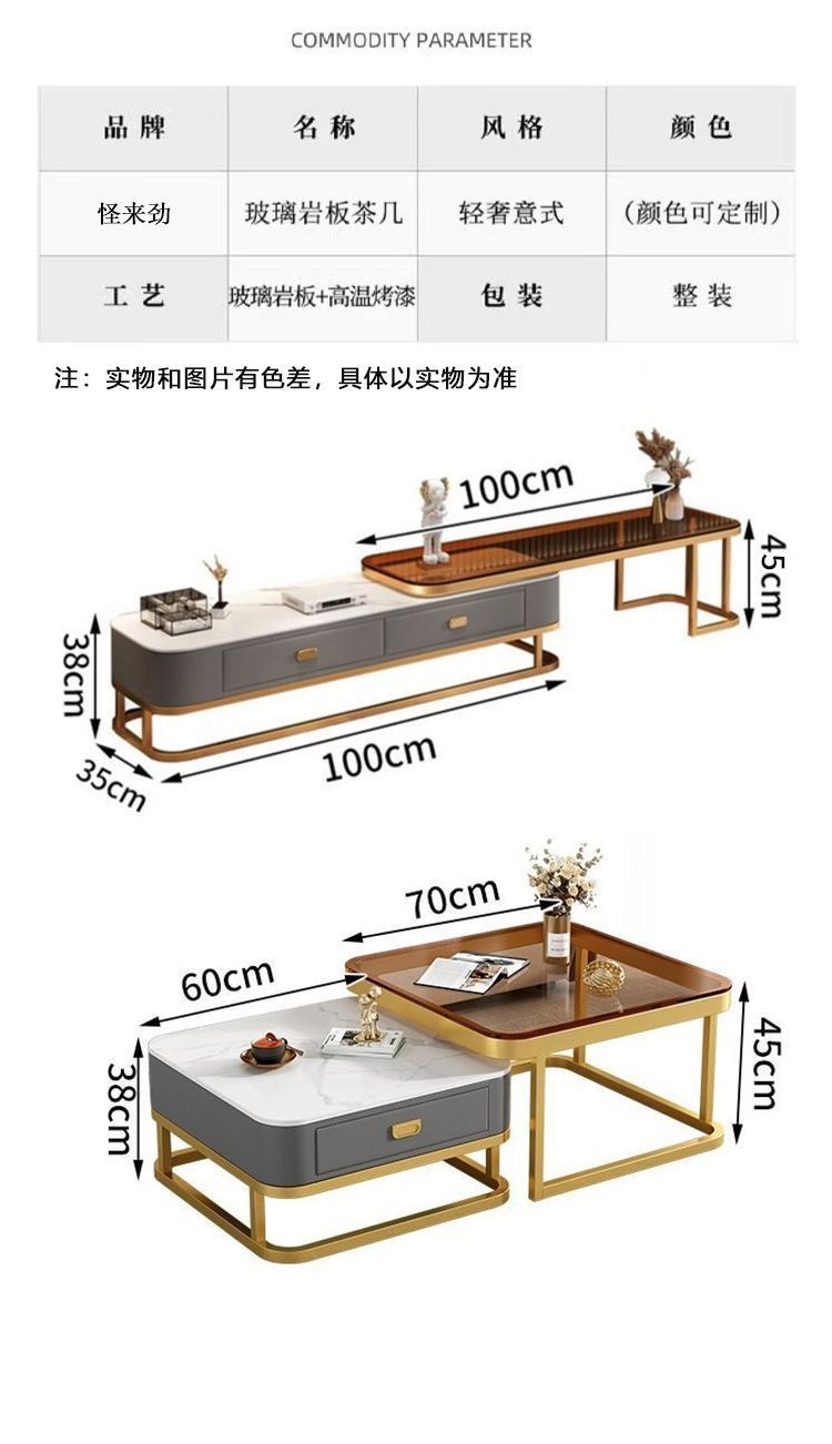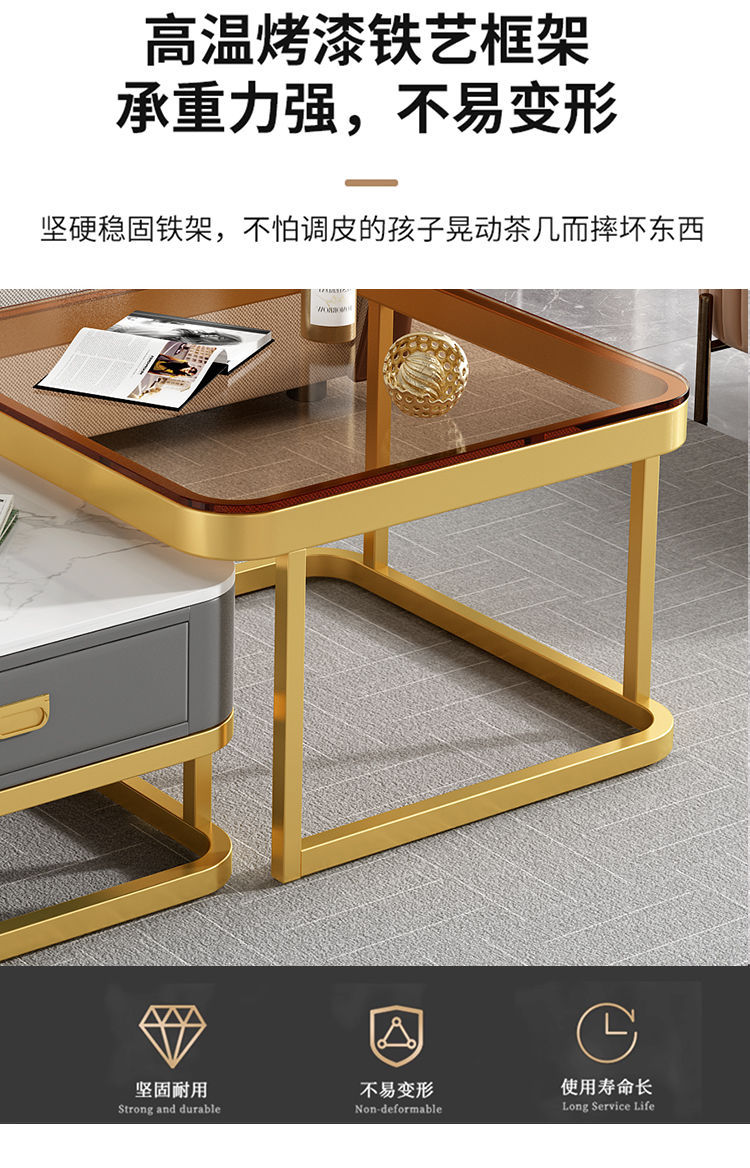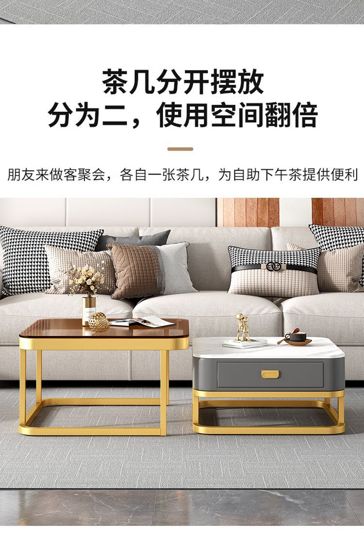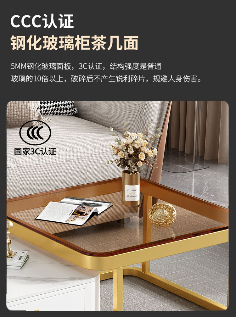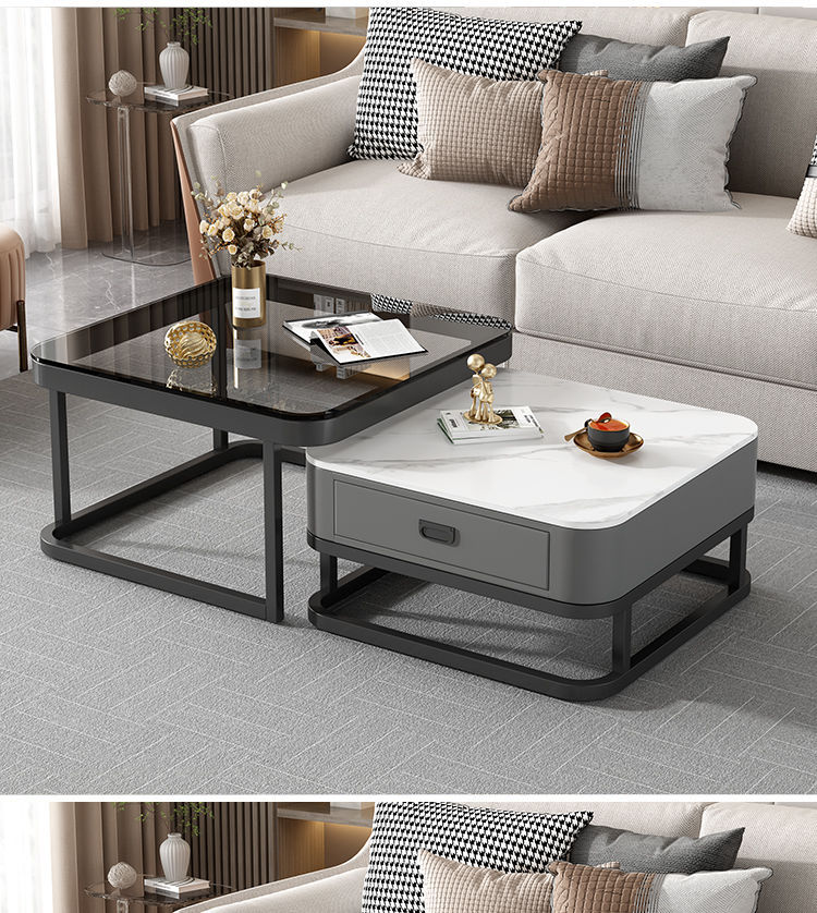 록 플레이트 유리 저장 커피 테이블 작은 아파트 TV 내각 조합 가정용 거실 광장 차 테이블 2024 새로운 스타일스토어 가기