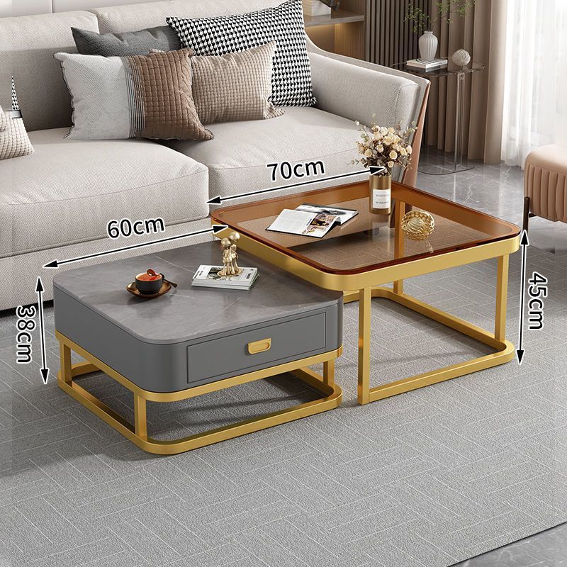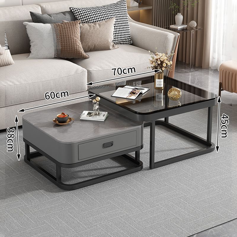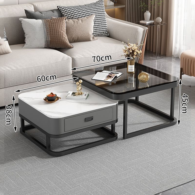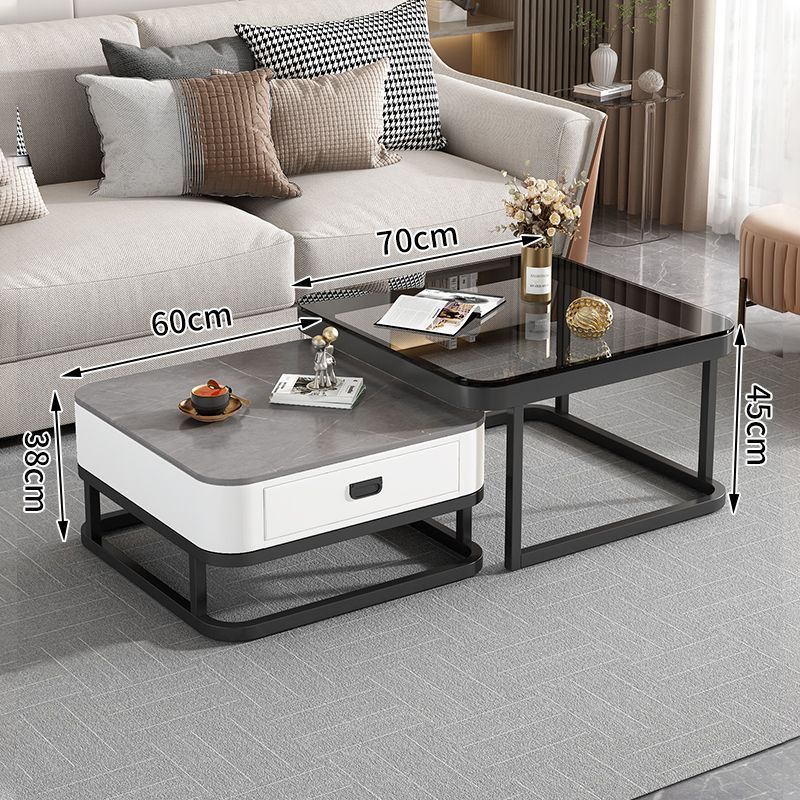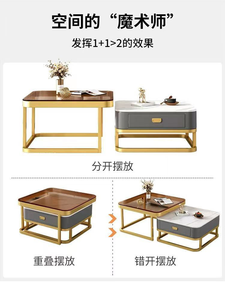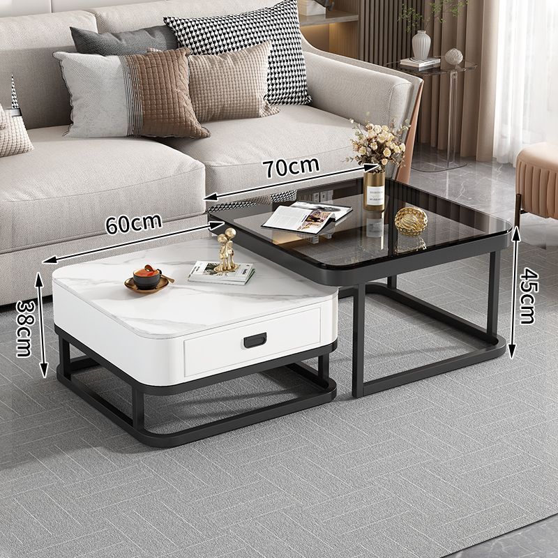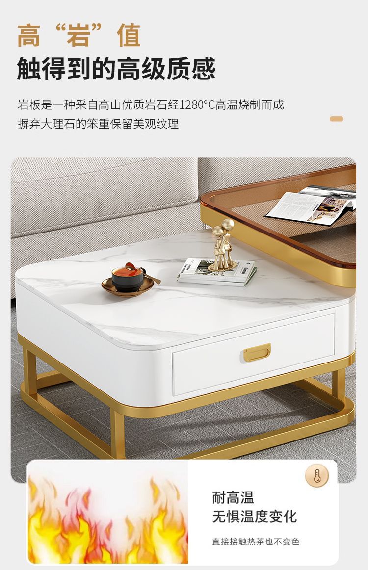 록 플레이트 유리 저장 커피 테이블 작은 아파트 TV 내각 조합 가정용 거실 광장 차 테이블 2024 새로운 스타일스토어 가기