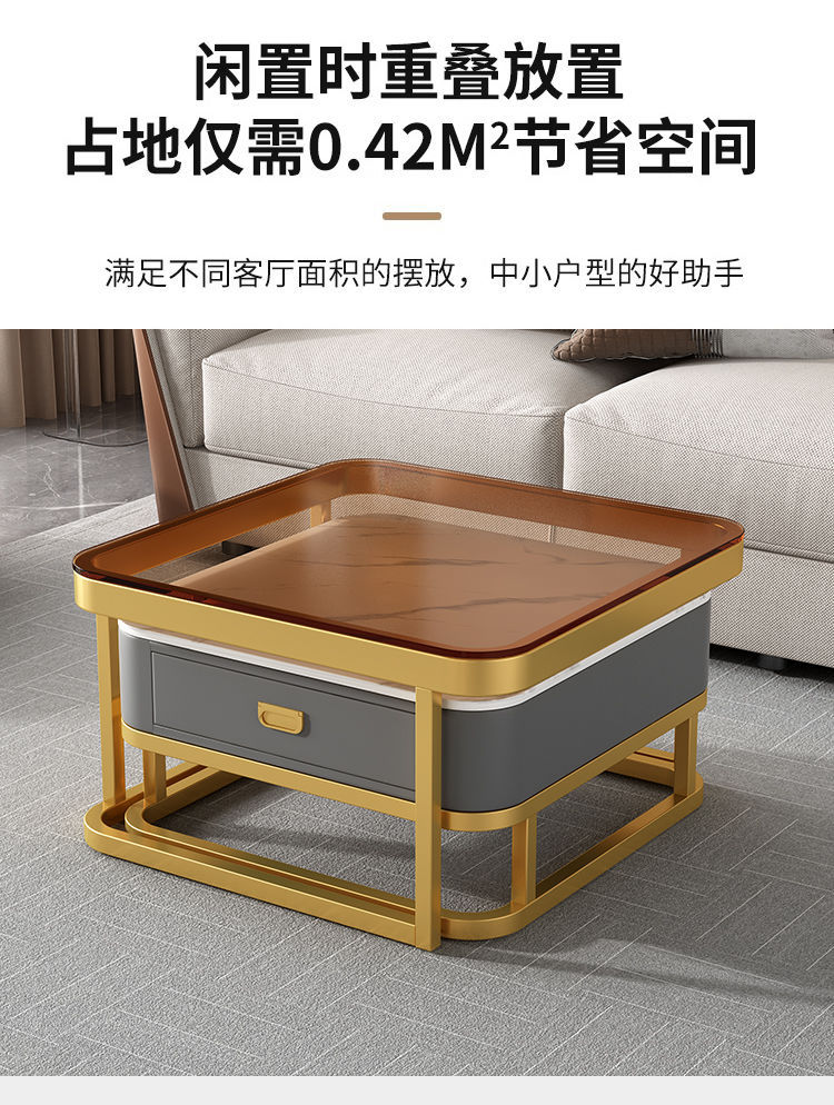 록 플레이트 유리 저장 커피 테이블 작은 아파트 TV 내각 조합 가정용 거실 광장 차 테이블 2024 새로운 스타일