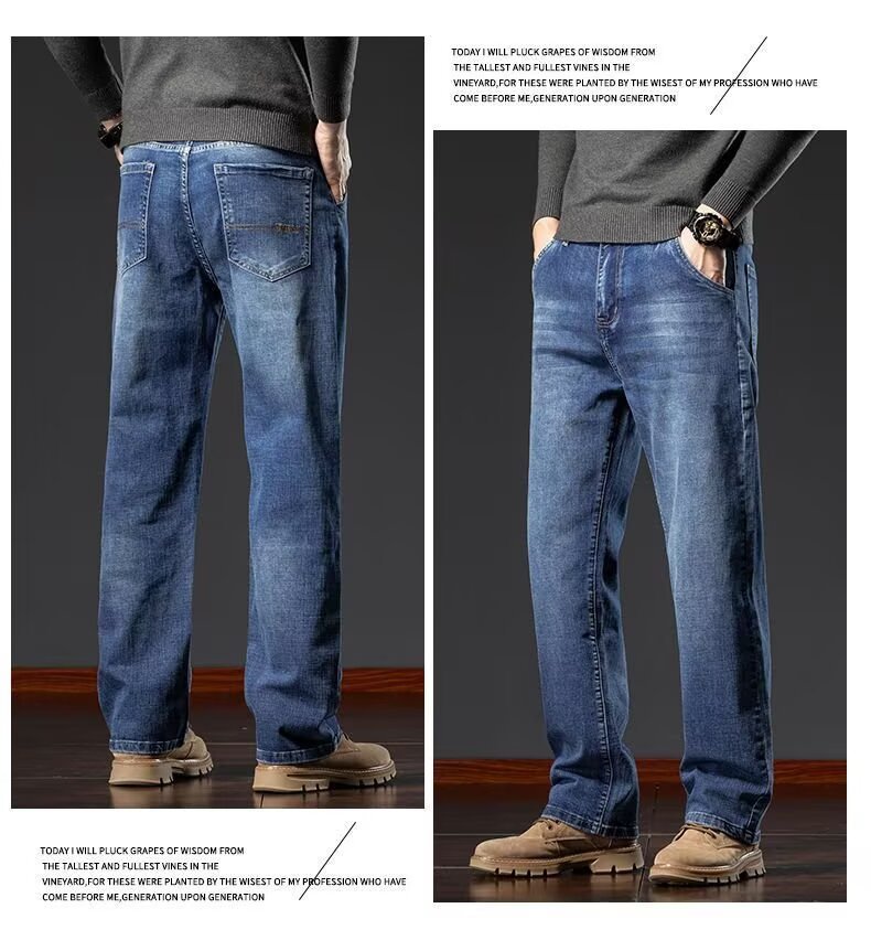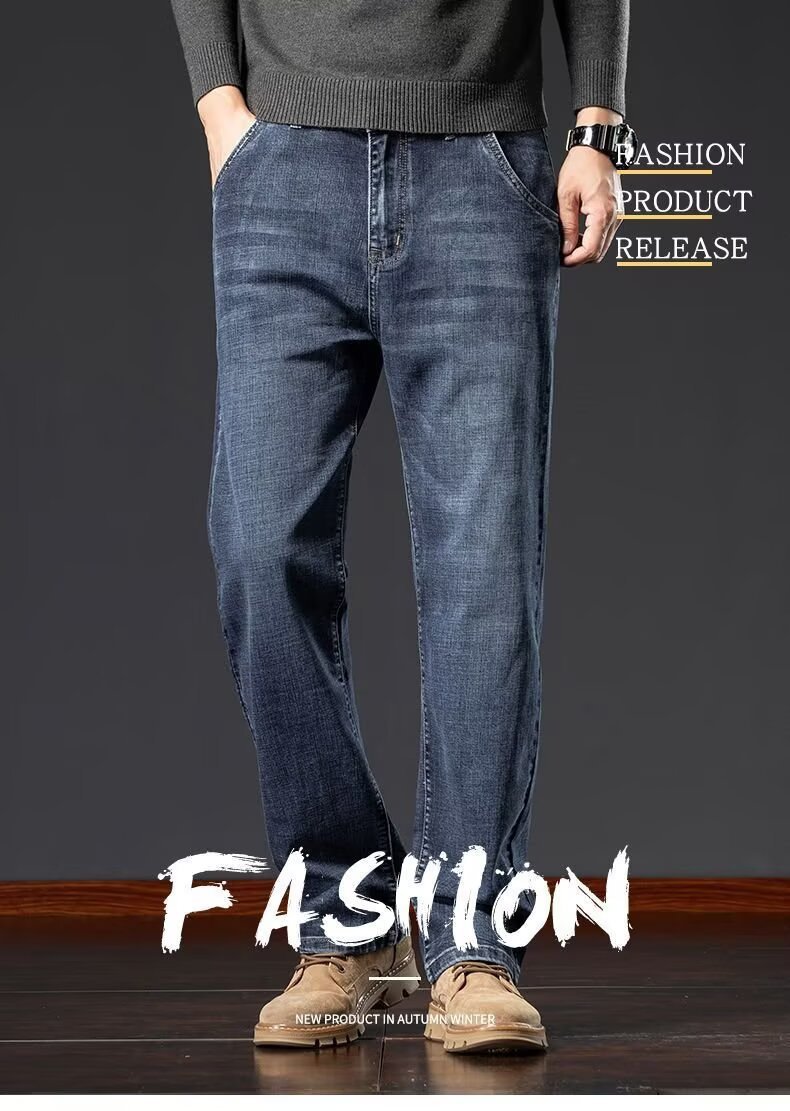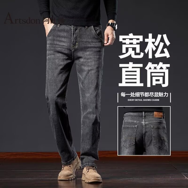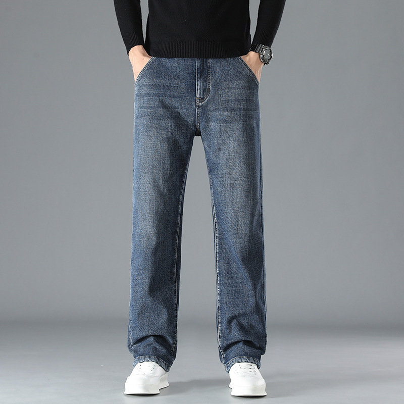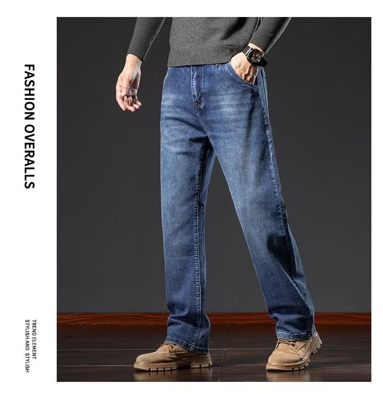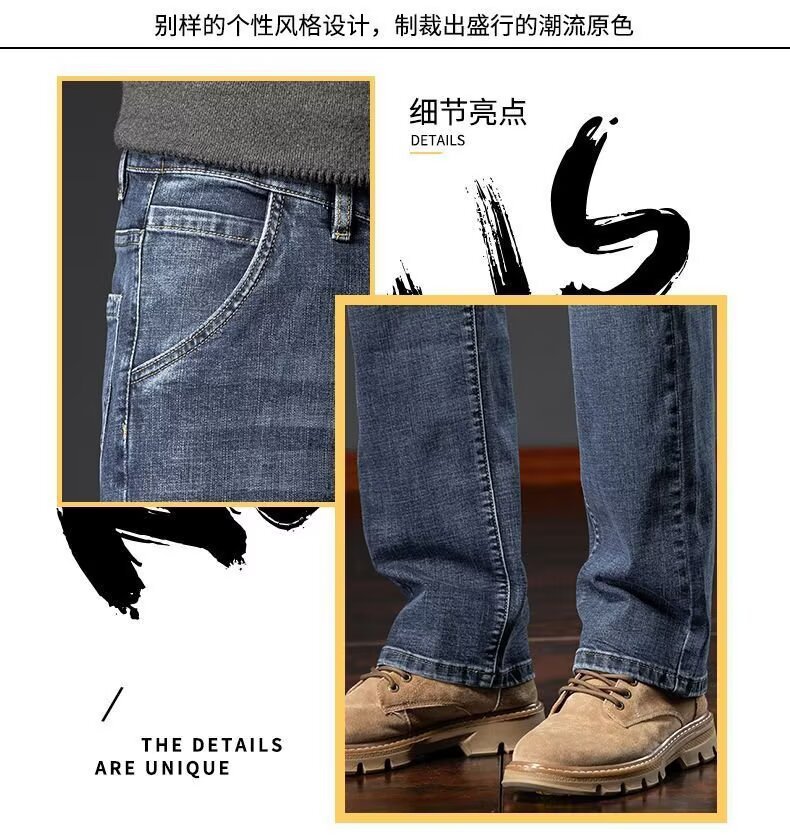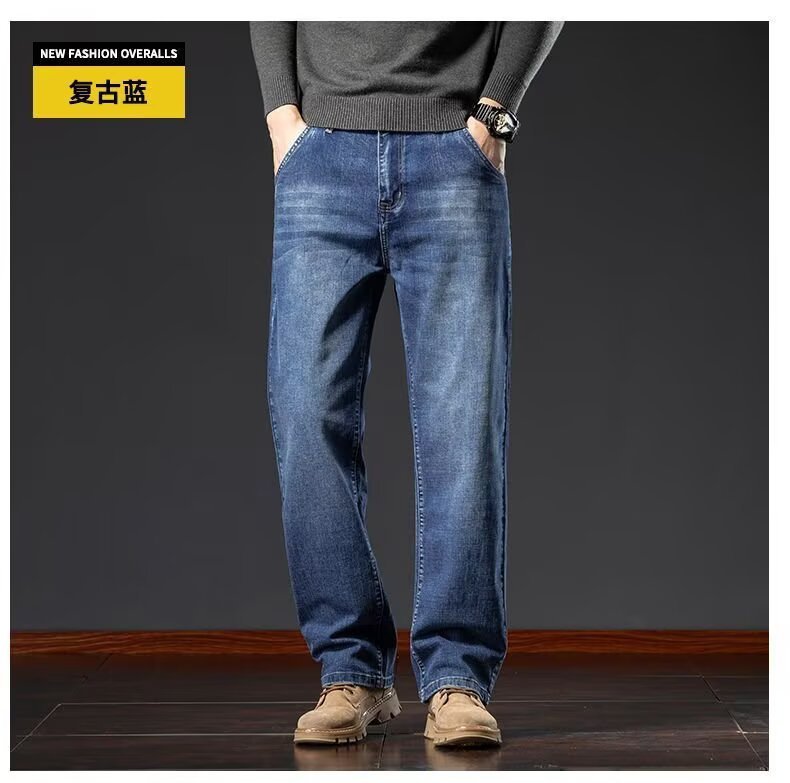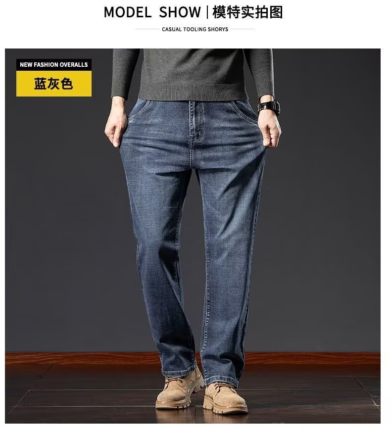 블루 그레이 경사 포켓 청바지 남성용 느슨한 스트레이트 여름 얇은 수출 원래 간단한 스트레치 바지스토어 가기
