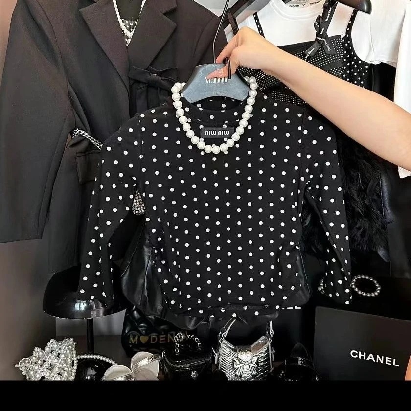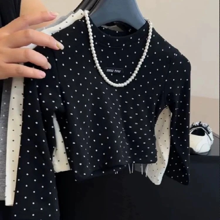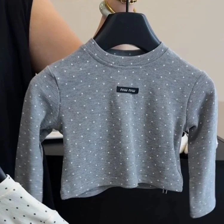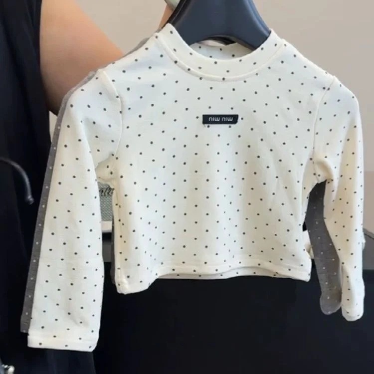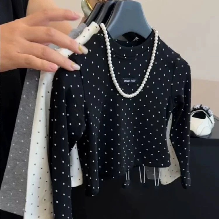 라임 소녀 한국 긴팔 티셔츠 봄 2025 새로운 여성 아기 서양식 웨이브 도트 베이스 셔츠 봄과 가을 탑스토어 가기