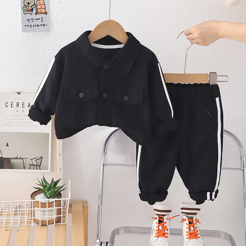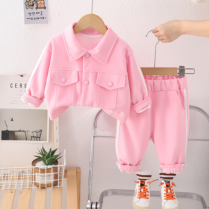 2025 새로운 세련된 어린이 유행 아기 봄과 가을 더블 포켓 라르 긴 소매 투피스 소녀의 봄 세트