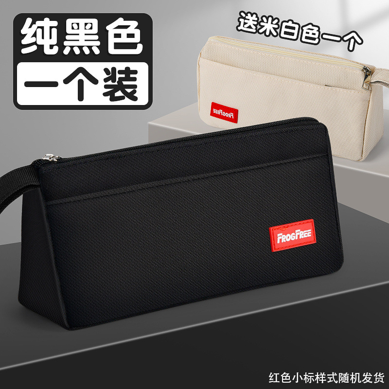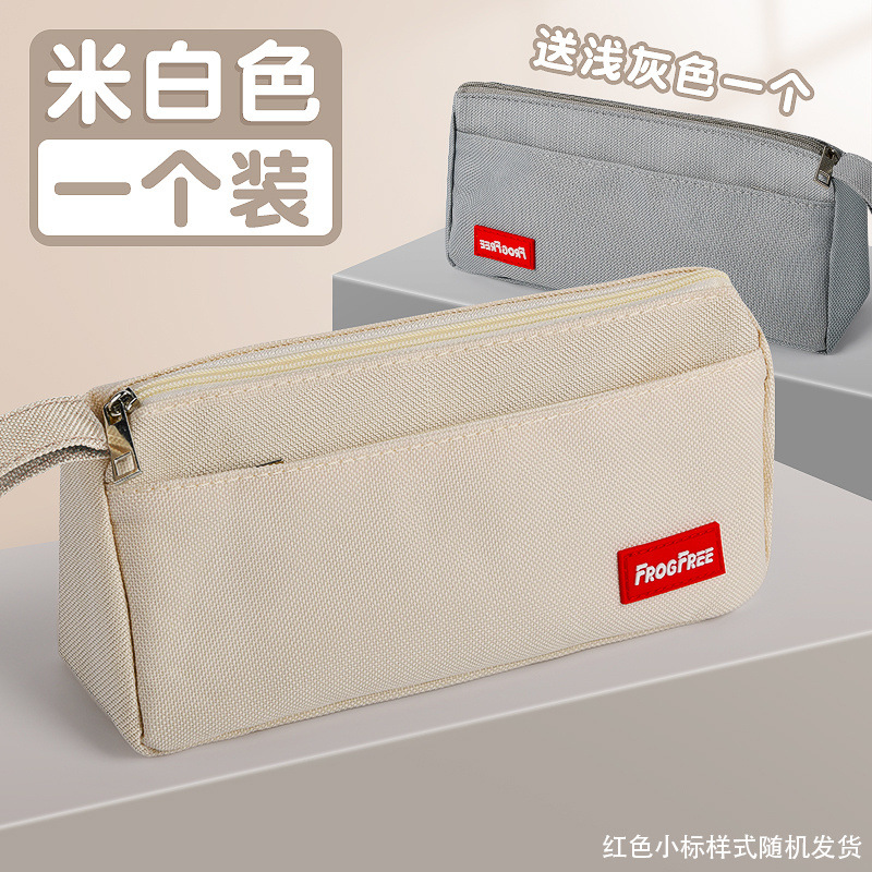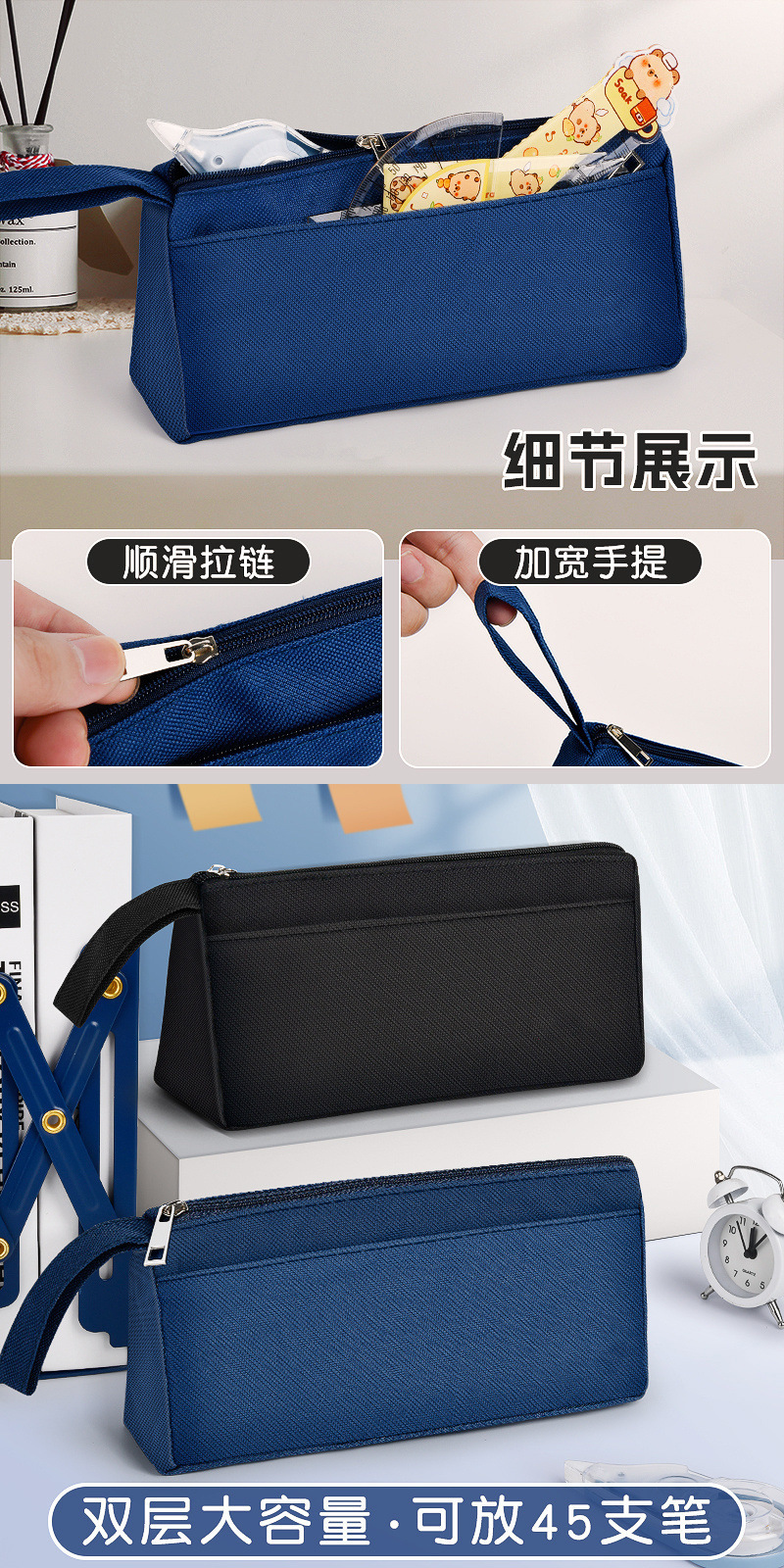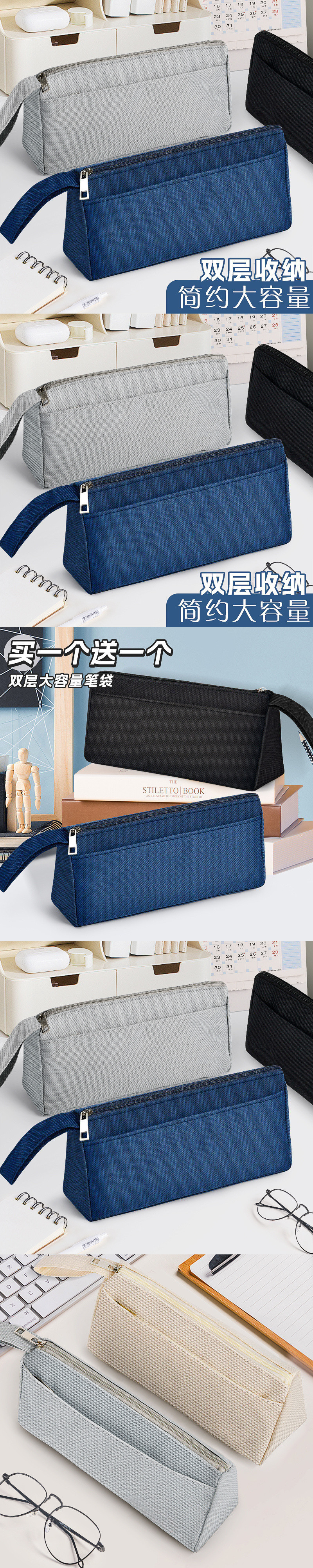 문구 가방 휴대용 간단한 더블 레이어 지퍼 연필 가방 휴대용 연필 가방 대용량 간단한 캔버스 연필 가방 도매