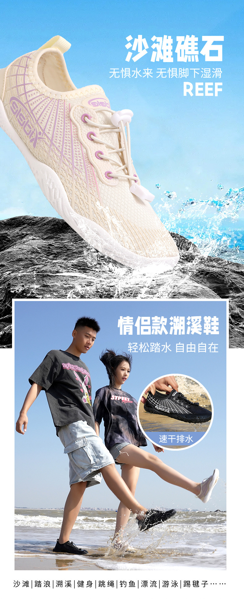 남성과 여성을위한 새로운 통기성 미끄럼 방지 빠른 건조 러닝로프 건너 뛰기 피트니스 신발 야외 표류 서핑스토어 가기