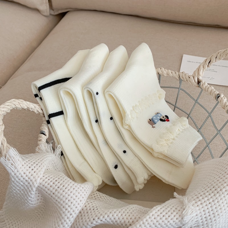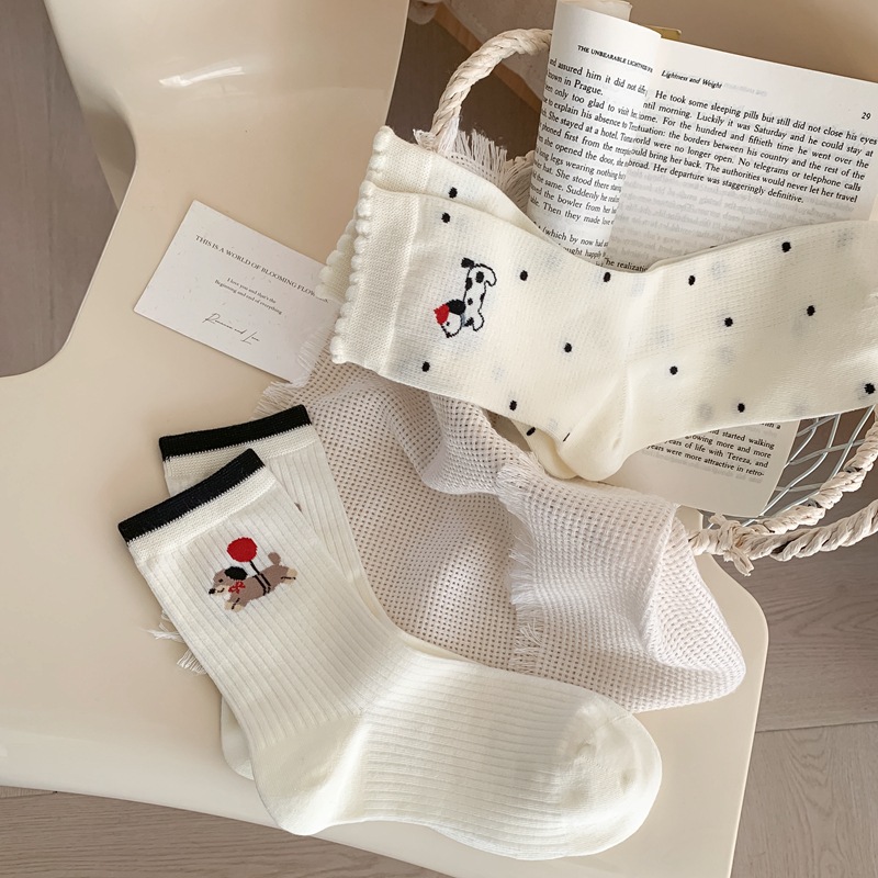 2025 년 봄과 여름 새로운 올인원 기계 뼈없는 자수 닥스 훈트 개 트렌드 통기성 여성 양말 창조적 인 흑백 양말 메쉬스토어 가기