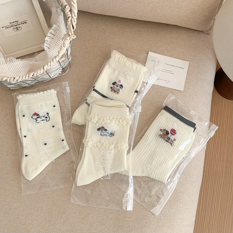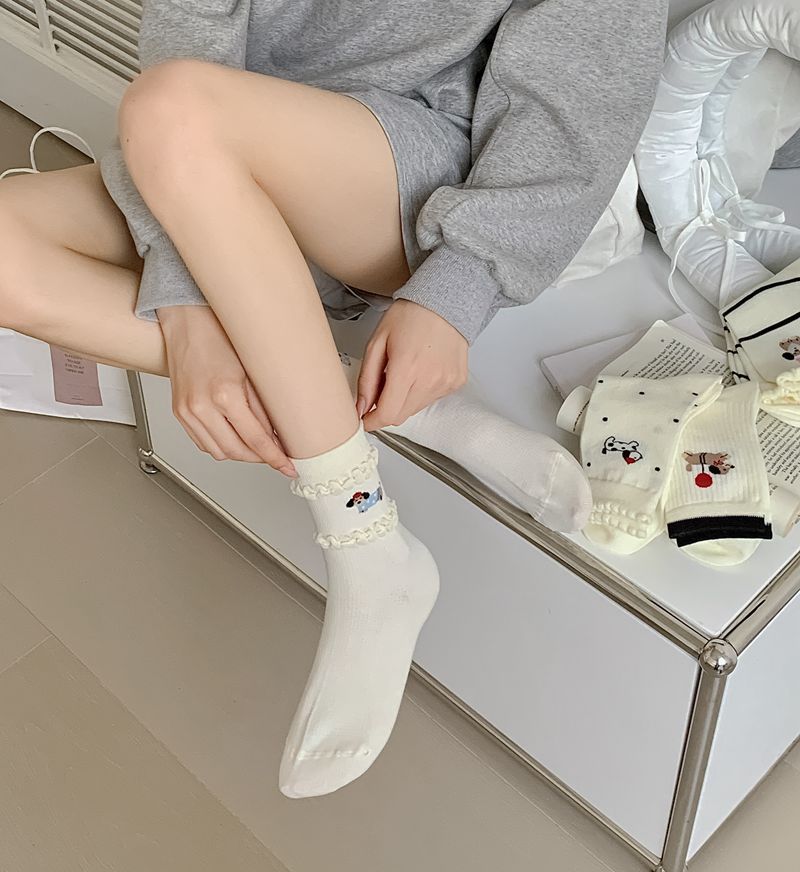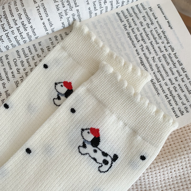 2025 년 봄과 여름 새로운 올인원 기계 뼈없는 자수 닥스 훈트 개 트렌드 통기성 여성 양말 창조적 인 흑백 양말 메쉬