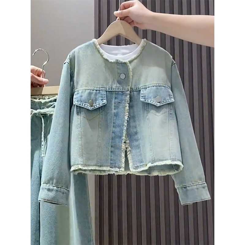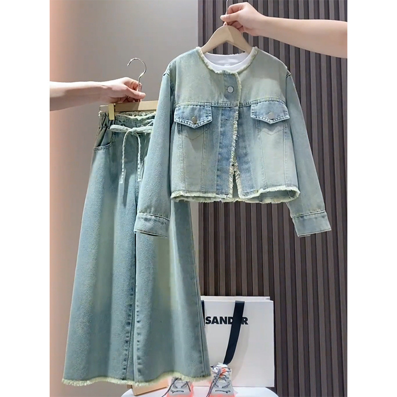 소녀 데님 세트 2025 신형 한국식 어린이 가을 긴팔 재킷, 느슨해지는 허리 바지 투피스 세트스토어 가기