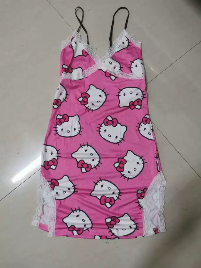 대외 무역 여름 아름다운 뒤로 얇은 홈 옷 섹시한 슬링 나이트 가운 귀여운 만화 귀여운 인쇄 치마 유럽과 미국 스타일스토어 가기