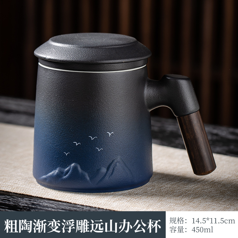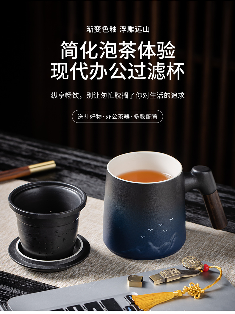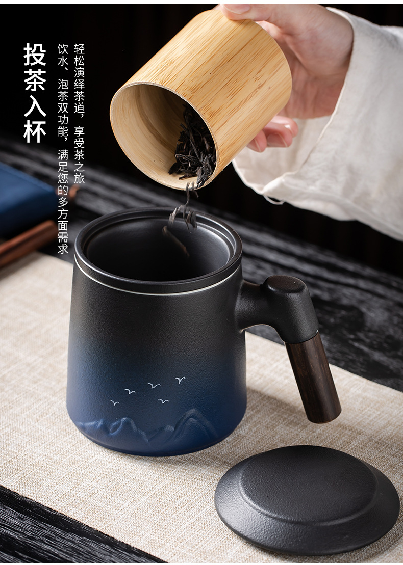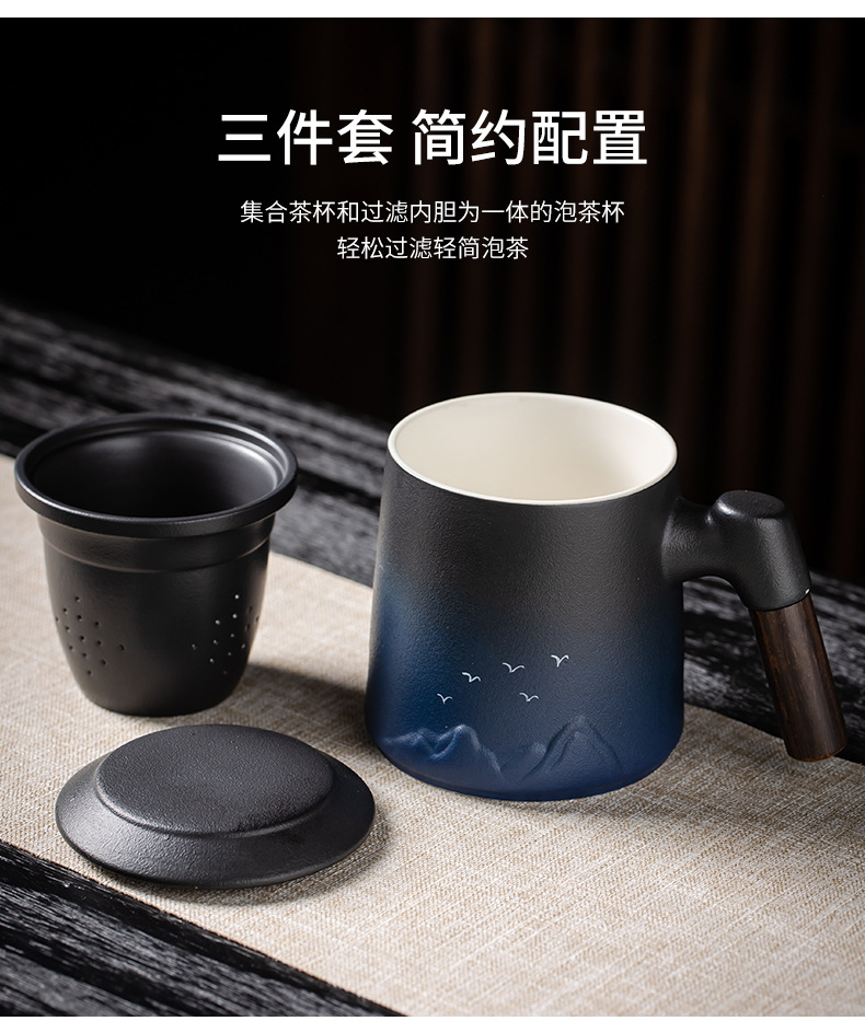 세라믹 차 물 분리 컵 가정용 대용량 나무 손잡이 뚜껑 개인 특별 차 컵 실용적인 선물 교사를위한스토어 가기