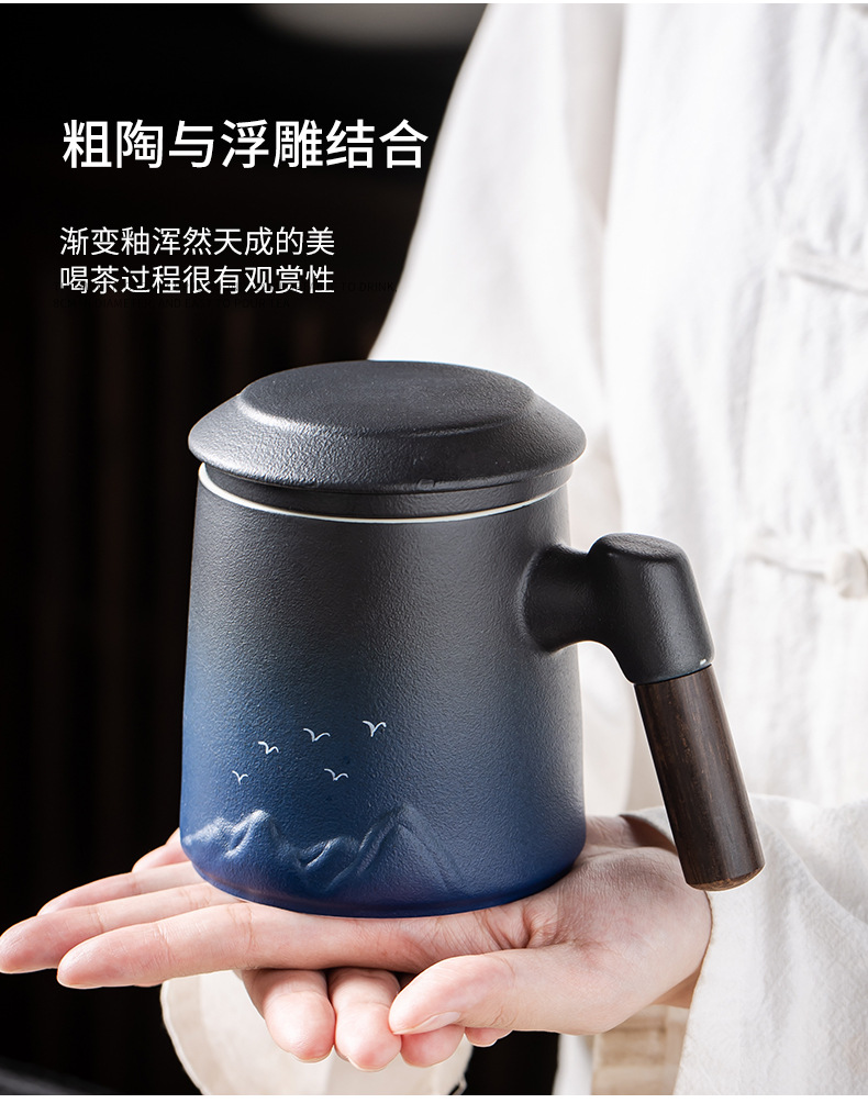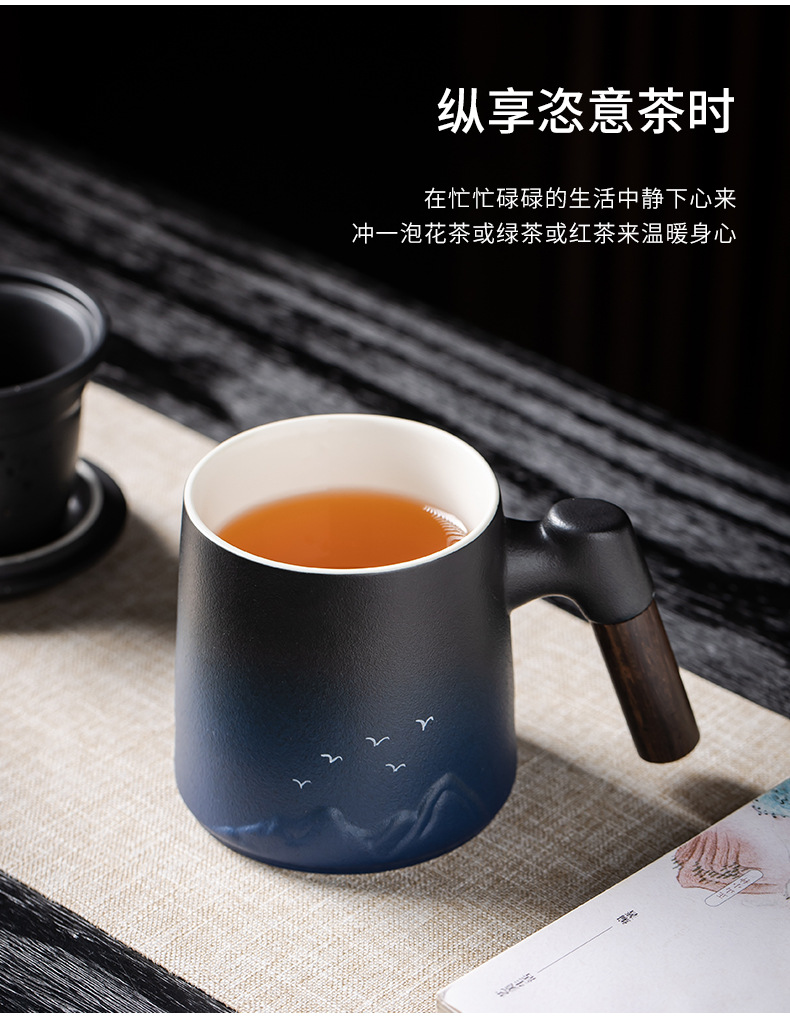 세라믹 차 물 분리 컵 가정용 대용량 나무 손잡이 뚜껑 개인 특별 차 컵 실용적인 선물 교사를위한