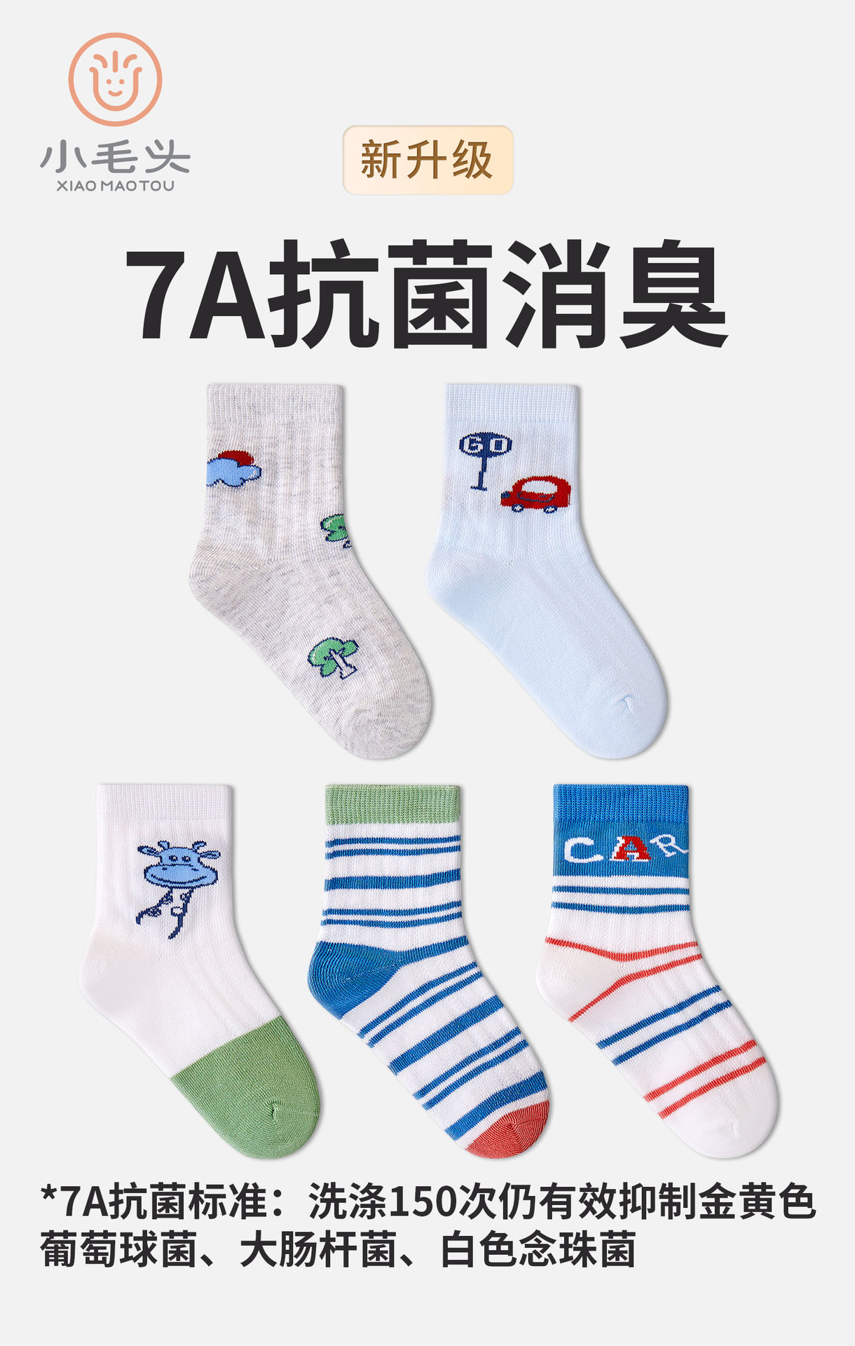 작은 머리 어린이 양말 얇은 소년 양말 새로운 7A 항균 학생 양말 면 만화 어린이 양말 도매스토어 가기