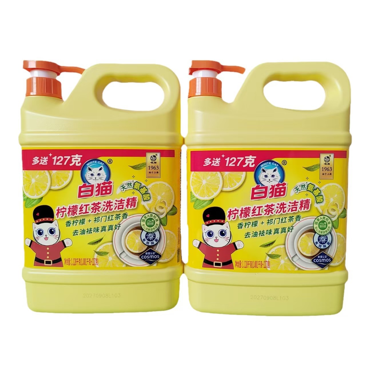 화이트 캣 주방세제 레몬 홍차 주방세제 기름때 제거 주방 세척 설거지용 기름때 제거 및 냄새 제거 대용량 주방세제